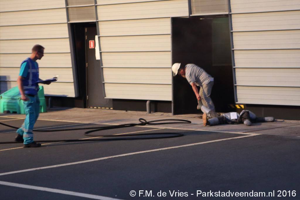 De burgemeester van Veendam was ook aanwezig om te kijken hoe de oefening verliep.