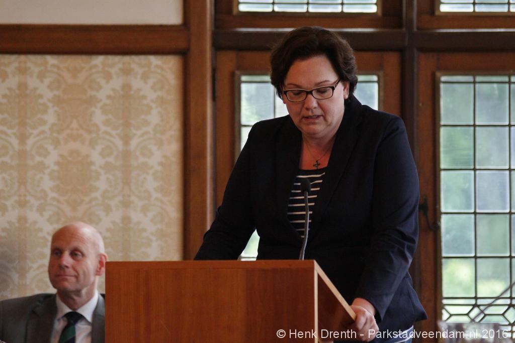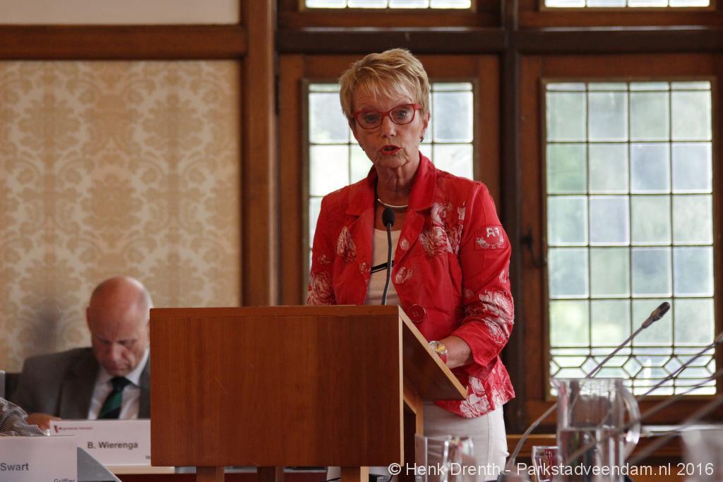 Fractievoorzitter mevrouw B. Felder van de VVD vertelde dat de VVD, gezien de noodzaak van opvang, haar verantwoordelijkheid als Veendammer bevolking wil nemen. Het college is positief geadviseerd om 300 vluchtelingen op te vangen. De inwoners hebben de mogelijkheid gehad om hun mening te geven. De VVD verwacht van het college te blijven betrachten om over de gang van zaken openheid te geven, zowel naar de raad als naar de inwoners. Op Social Media speelt de opvang van de vluchtelingen en de stateshouders die recht hebben op een woning in Veendam, dat enorm de discussie vertroebelt enorm. De VVD verzocht daarom om duidelijke communicatie van het college naar de burgers.