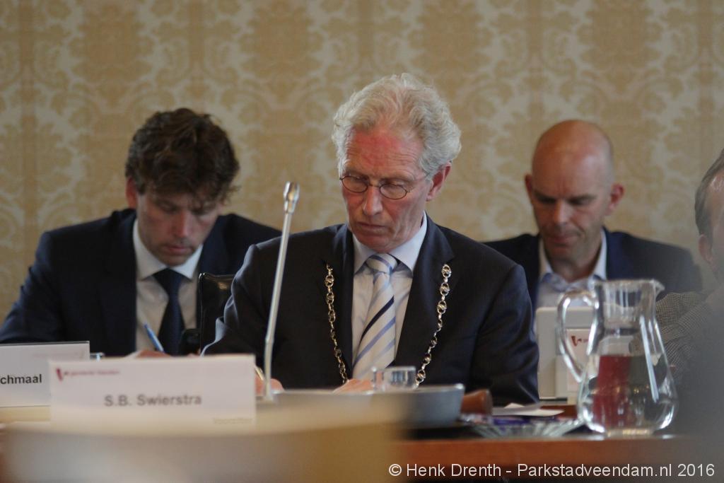 Na de toespraken gaf burgemeester Swierstra nog verder uitleg over de totstandkoming van het besluit. Het college had met de raad besproken of ook Veendam in een rol kon spelen in de opvang van vluchtelingen. Verschillende theoretische mogelijkheden werden aan het COA aangeboden. Op 25 september heeft het college met het COA een eerste oriënterend overleg gehad. Het COA was zelf met het voorstel gekomen voor opvang op een hotelboot op het water.