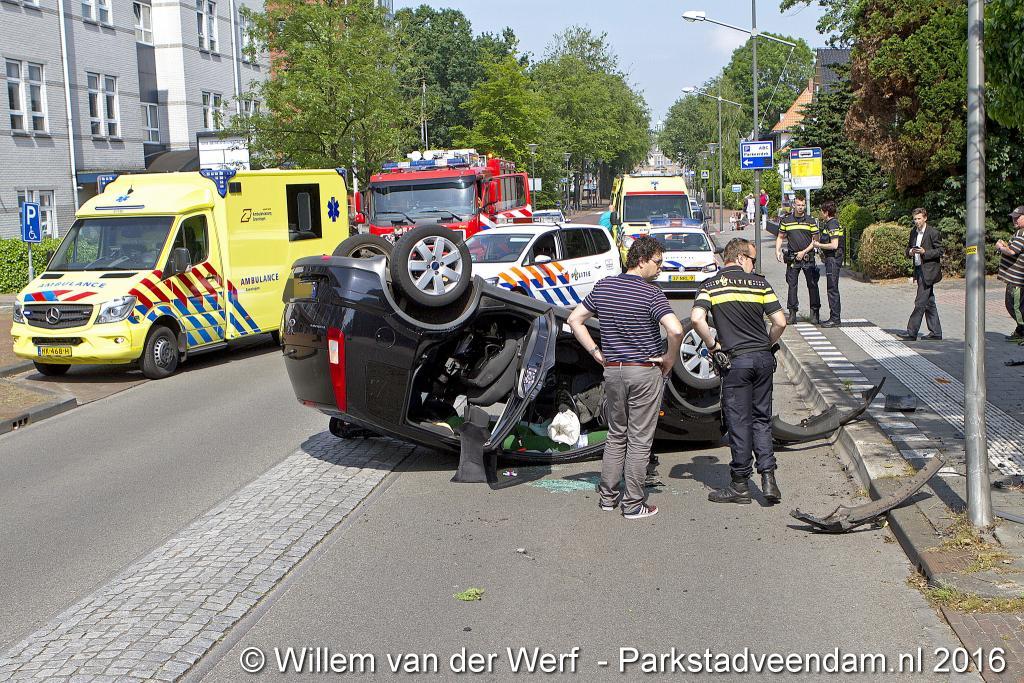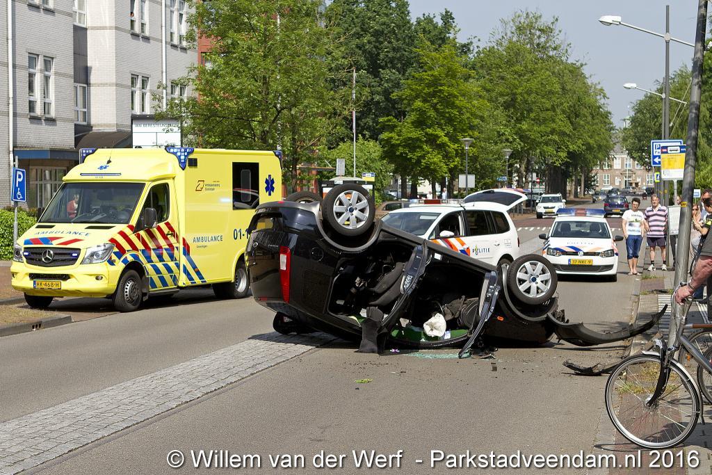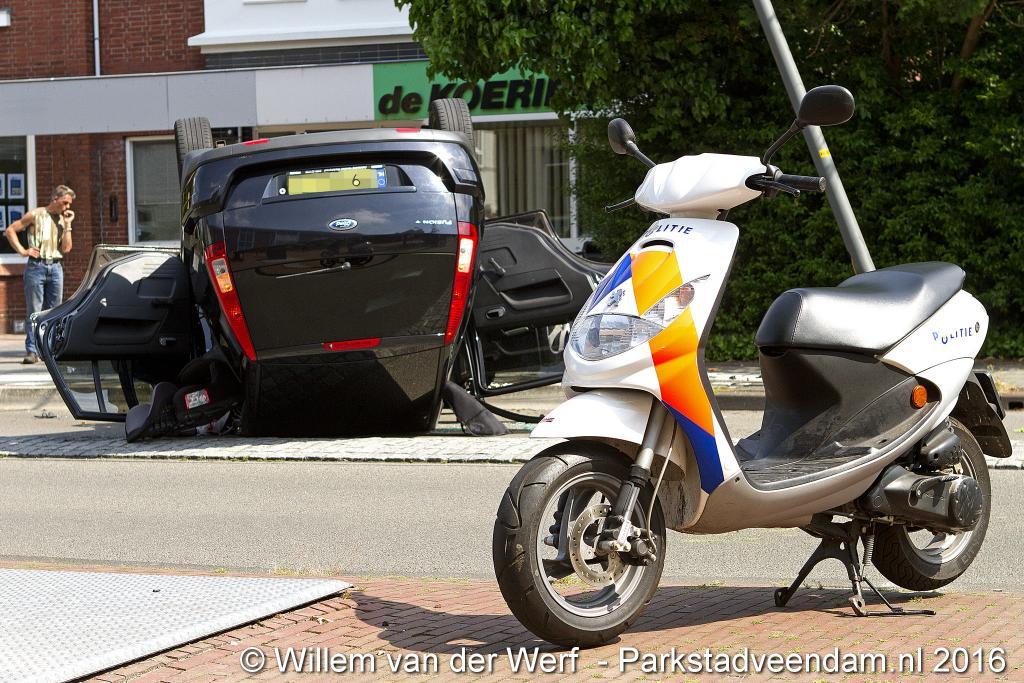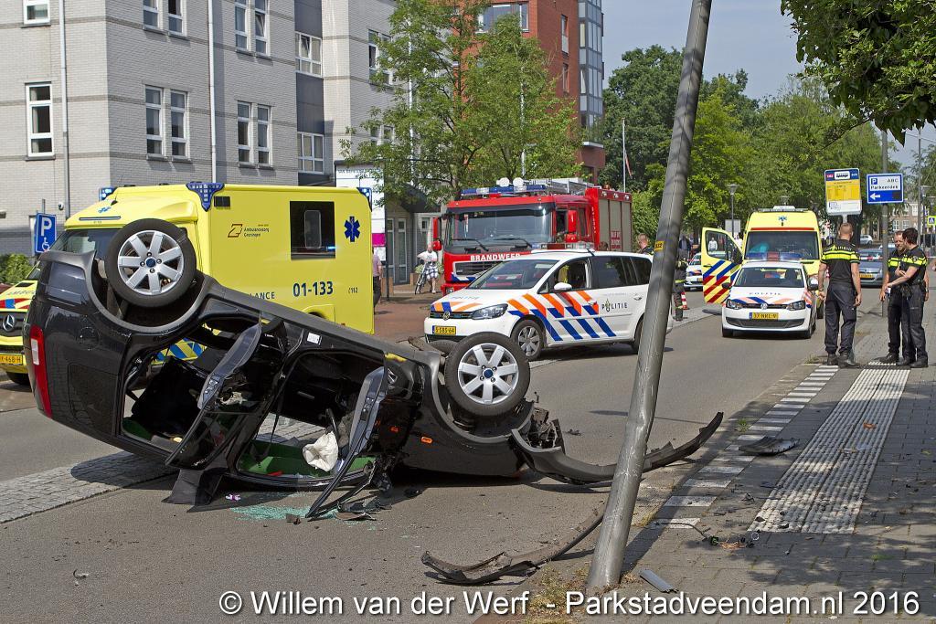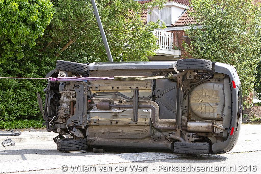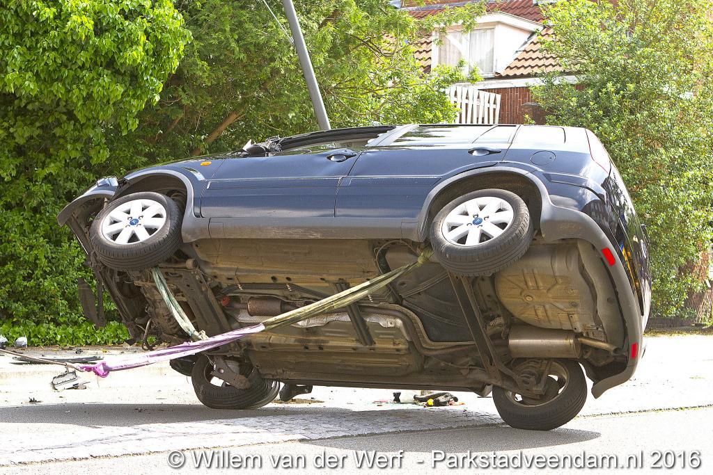VAN BERESTEIJNSTRAAT – Vrijdagochtend om 11.00 uur raakte een voertuig op de kop met daarin drie personen. Onder hen een zwangere vrouw en een kind van rond de 3 jaar.