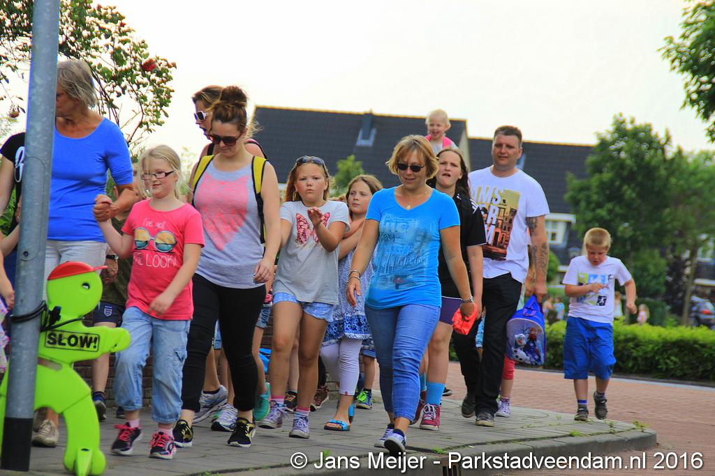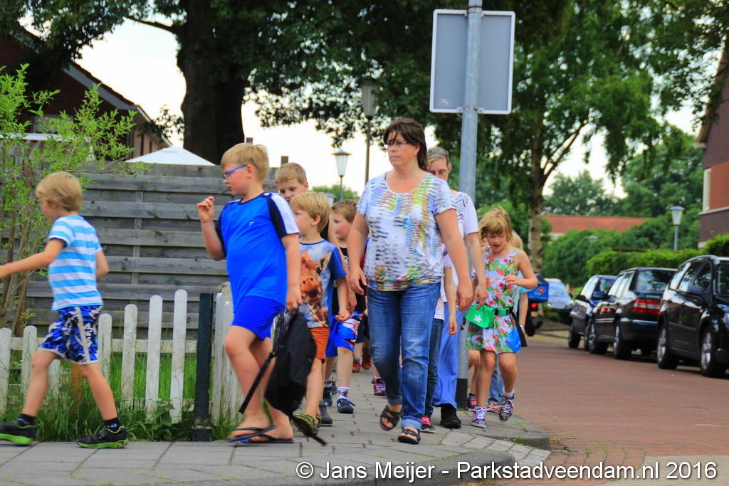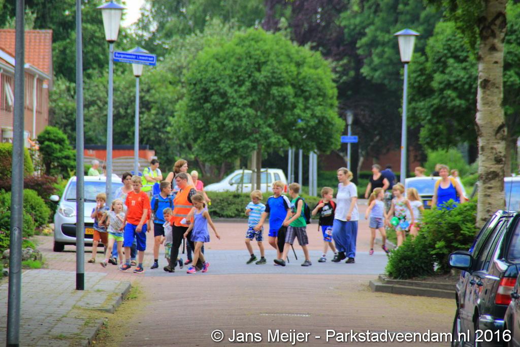 WILDERVANK - De tweede dag van de avondvierdaagse in Wildervank is goed verlopen. Het bleef droog maar het was wel warm en benauwd, de meeste wandelaars hadden het zweet op het voorhoofd staan. De kinderen hadden een hoop lol en er werd hard gezongen toen de 10 km en 5 km elkaar kruisten op de Sorghlviethlaan om samen te eindigen bij de Wildervanckhal.