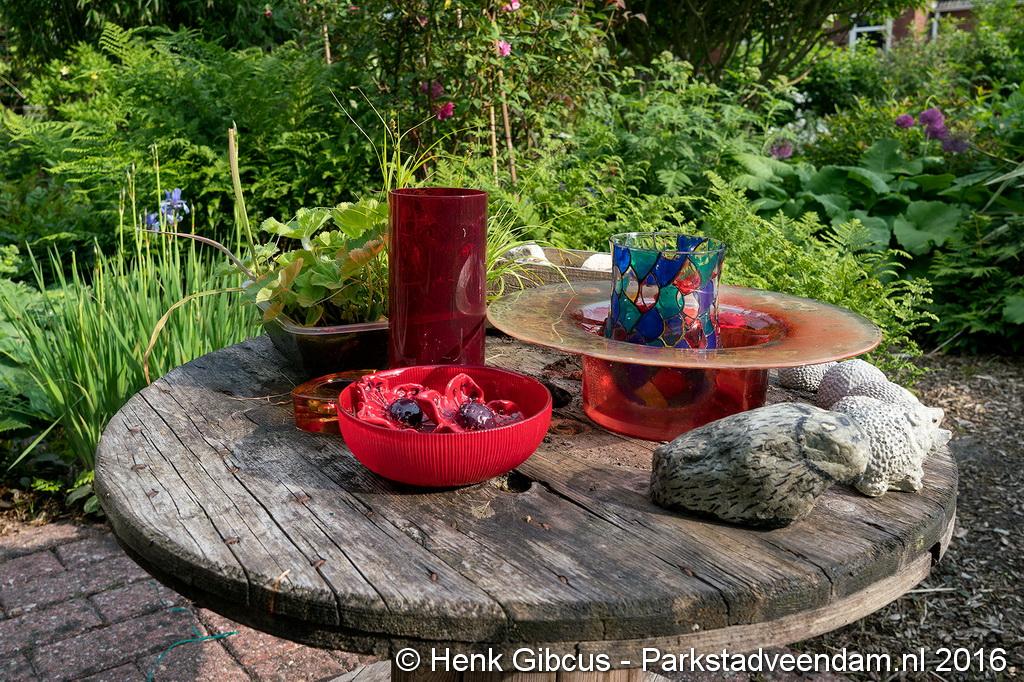 Voor zowel Ina als Ben geldt dat de tuin niet hun enige hobby is. Ben is een verdienstelijk beeldhouwer. Hij maakt abstracte speksteen beelden, die veelal in de tuin geëxposeerd worden. Tussen de beplanting komen die werkelijk schitterend tot zijn recht.