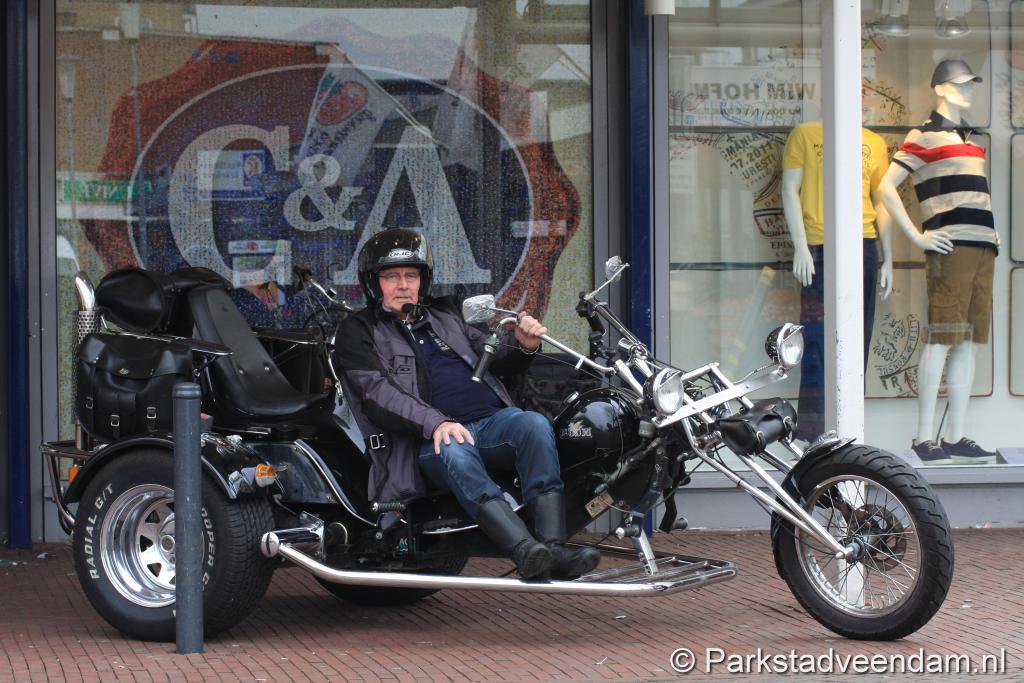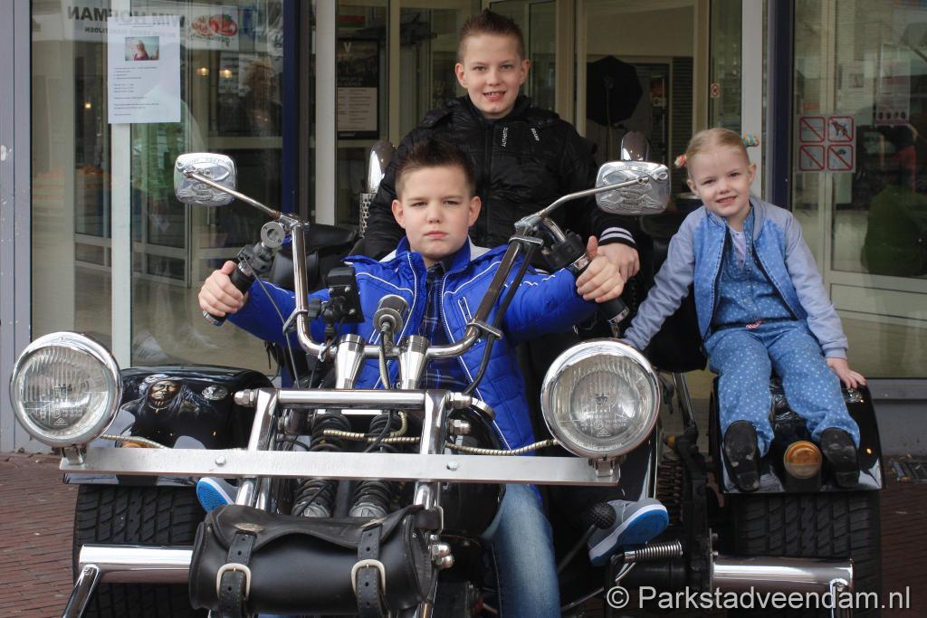 De trike van Jos Kaijser uit Stadskanaal was te breed om naar binnen te kunnen, maar deze trok buiten veel bekijks. Kinderen, maar ook volwassenen, gingen ermee op portret. Jos was er om 12 uur, en het zou voor een uurtje zijn. Maar hij nam ruim de tijd.