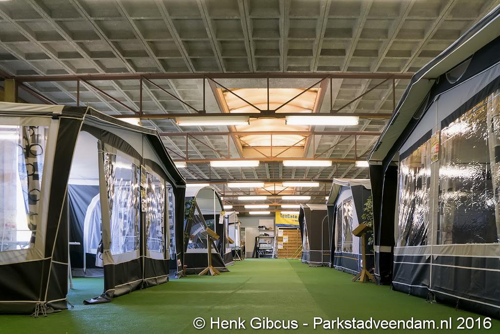 Het bedrijfsterrein beslaat ca. 8.000 m², de 1e etage met uitgestalde tenten niet meegerekend. Voor de nodige voorraad staan twee grote magazijnen even verderop ter beschikking. Het uitstallen van de tenten, o.a. op de verdieping, vraagt erg veel oppervlakte. Een beetje tent vraagt al snel 30 m² en dan moet je er nog langs kunnen lopen! Er staan er zo maar twintig!