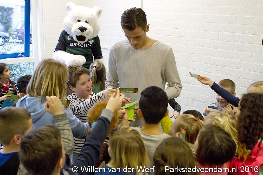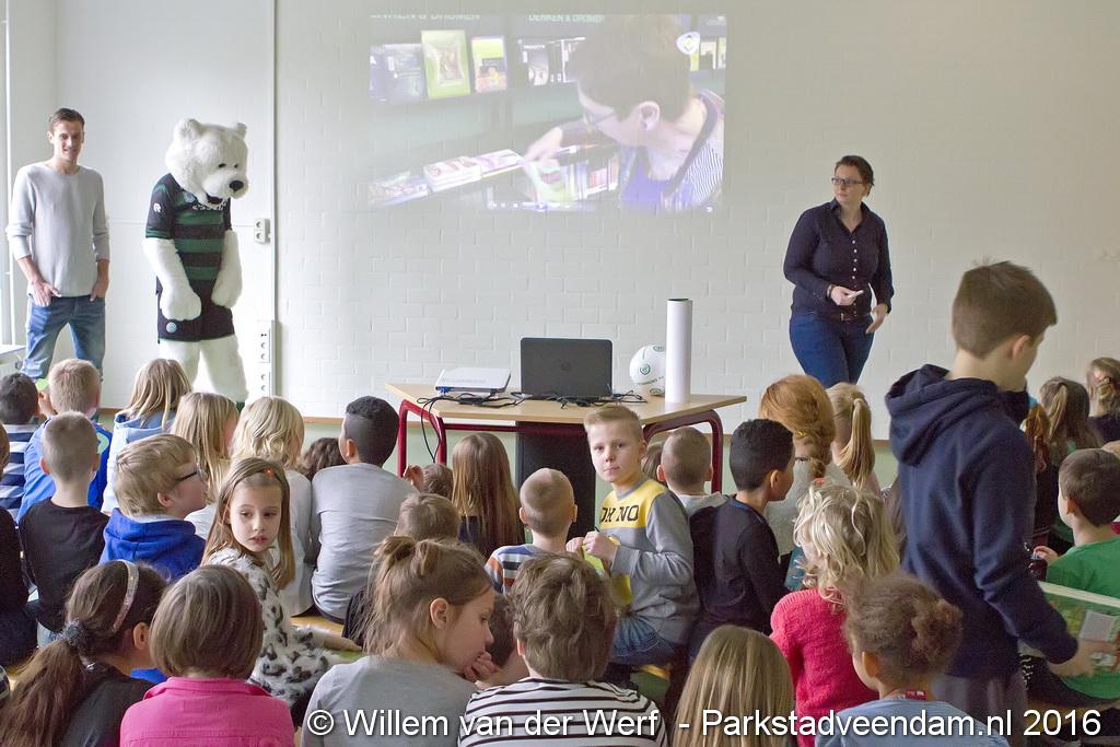LEZEN - Dinsdagmiddag was de officiële aftrap van het project Scoor een boek in Jenaplanschool In de Manne in Veendam. Dat gebeurde in aanwezigheid van FC Groningen speler Etiënne Reijnen en mascotte Groby.