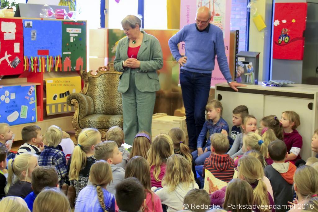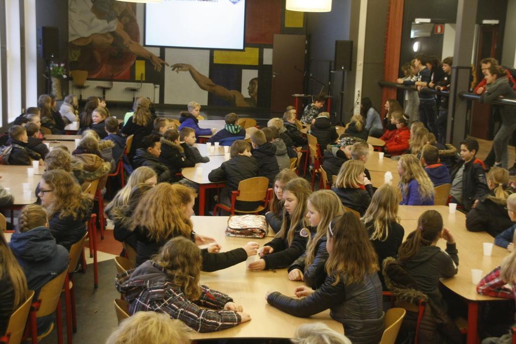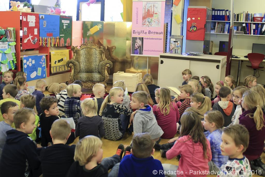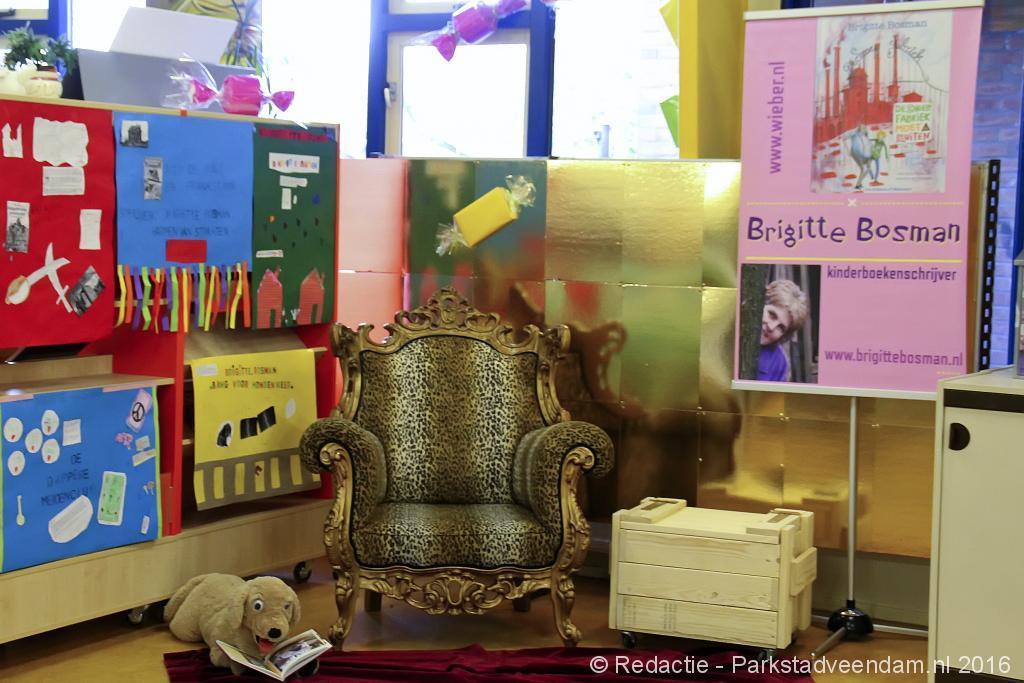 SCHOOLSCHRIJVER - Brigitte Bosman, auteur van onder andere De snoepfabriek moet sluiten, was donderdag te gast als Schoolschrijver op de Sleutel. Ze werd feestelijk  ontvangen door alle leerlingen, leerkrachten en wethouder Jaap Velema van de gemeente Veendam.