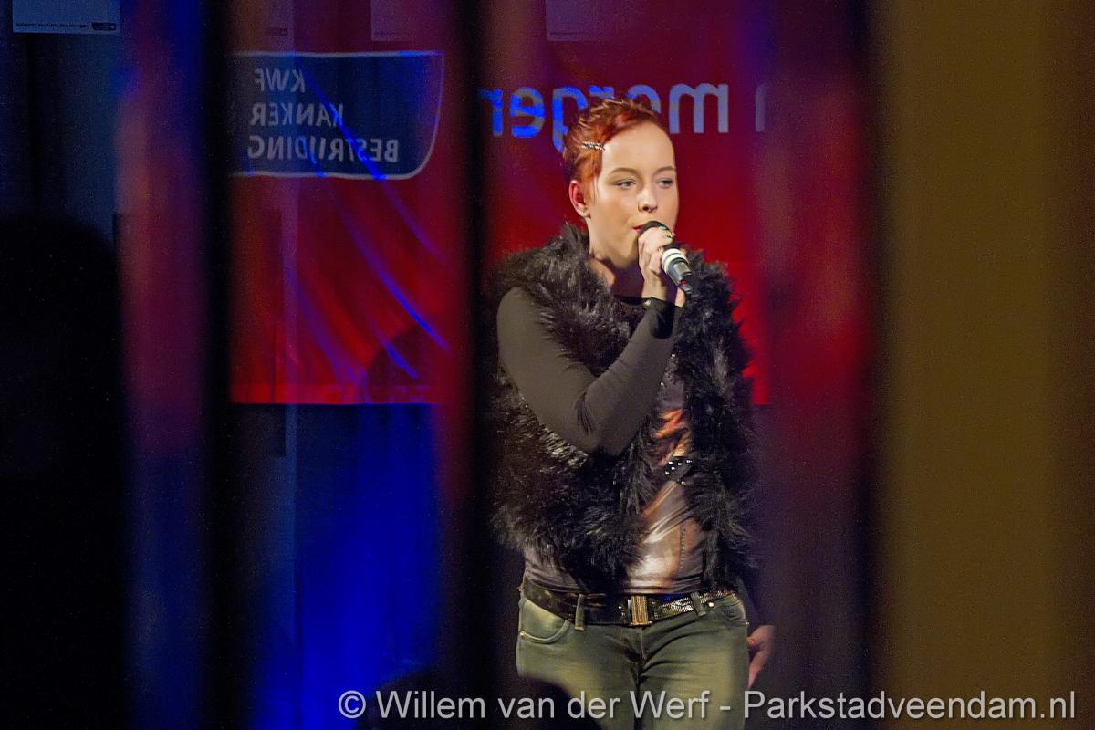 BENEFIET - Afgelopen zaterdagavond is er een benefietavond gehouden voor het KWF, georganiseerd door Het Perron in Veendam. Diverse regionale artiesten traden deze avond belangeloos op voor het goede doel. Er werd om 19.30 uur afgetrapt door Aisha. Elke artiest vulde een half uur met Nederlands-, maar ook Engelstalige nummers. De sfeer zat er gelijk goed in.
