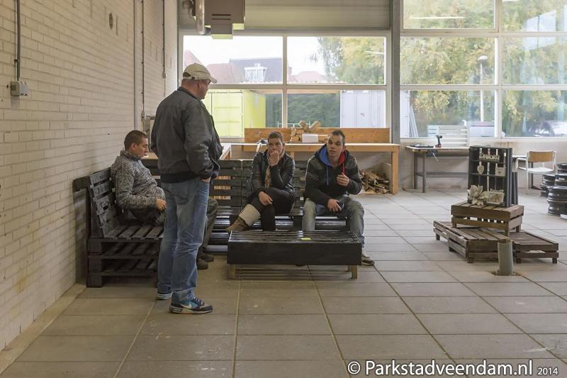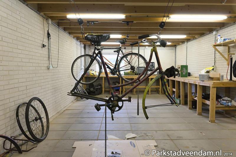 De Bruggen begeleidt cliënten voornamelijk uit de verslavingszorg, jeugdhulp, een GGZ traject of zwakzinnigenzorg naar het gewenste niveau van zelfstandigheid. De Bruggen werd in de zomer van 2013 door Emile Coenen opgezet. “We zijn vorig jaar in juni begonnen met 2 cliënten. Inmiddels zitten we op 12 cliënten”, vertelt hij. “We zijn vanuit ons huis in Veendam begonnen. Aan het begin van dit jaar zijn we naar deze locatie aan de Adriaan Geertsplein verhuisd. Het pand heeft een eigen werkplaats waar cliënten van alles kunnen maken en repareren. Er is ook een werkplaats voor fietsen aanwezig. Cliënten komen voor dagbesteding. Ze mogen zelf bedenken waar ze mee aan de slag willen. Willen ze iets van hout maken? Of gaan ze liever met het repareren van fietsen aan de slag? Ze kunnen bijvoorbeeld meubels maken of opknappen en dit meenemen naar huis. “Het is belangrijk dat ze iets om handen hebben wat ze leuk vinden. Op deze manier hebben ze een positieve afleiding”, aldus Emile.