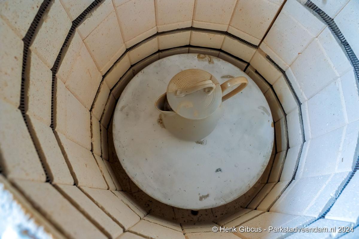 Na het drogen wordt de oven gevuld. Deksel dicht en het proces kan beginnen. Het bakken geschiedt op een temperatuur van 1020 °C. Het opwarmen gaat heel geleidelijk zo ongeveer 2 °C per minuut. In 6 ? uur gaat die naar 600 °C.
