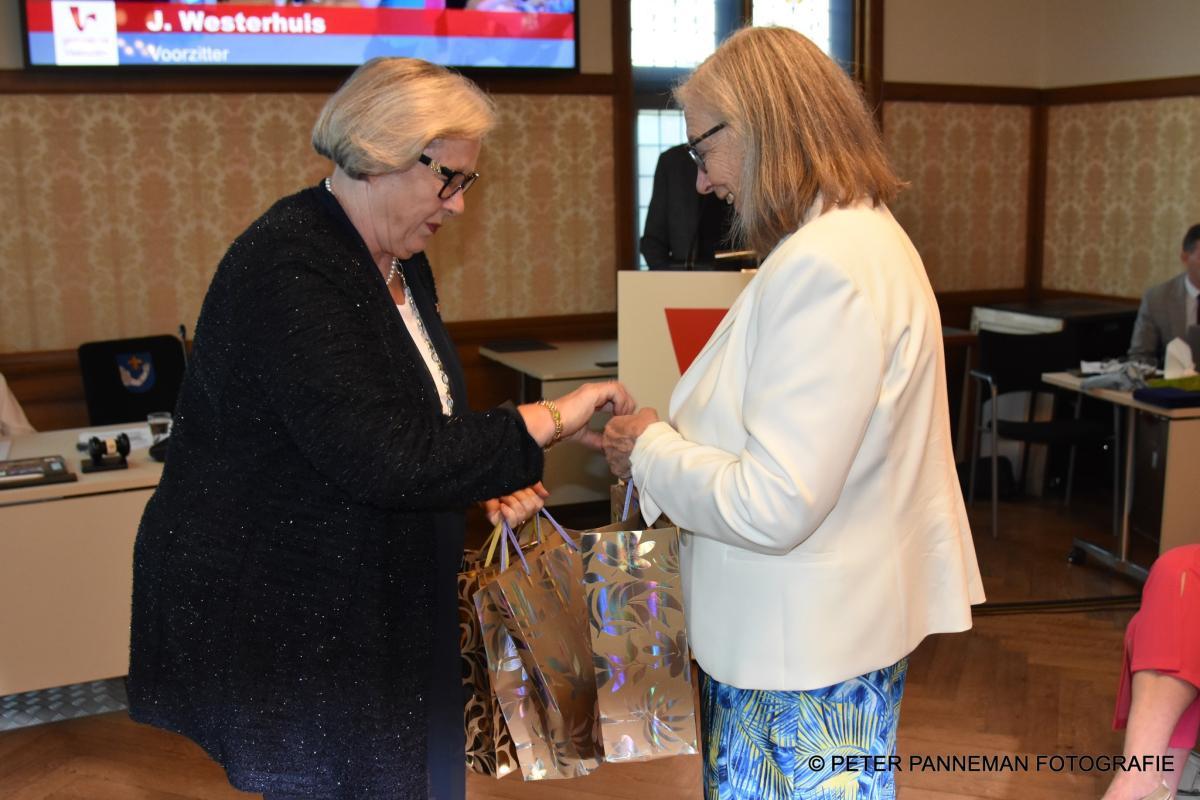 Fenneke wist helemaal van niets maar totaal verrast kreeg ze samen met collega Marga heerlijke bonbons, cadeau en een toespraak midden in de kapperszaak van haar trouwe klant. Het cadeau bestond uit een tweetal zilveren lepeltje die mevr. Antema van haar moeder geërfd had. “Ik schenk ze nu aan jullie, als blijvend herinnering aan mij”.