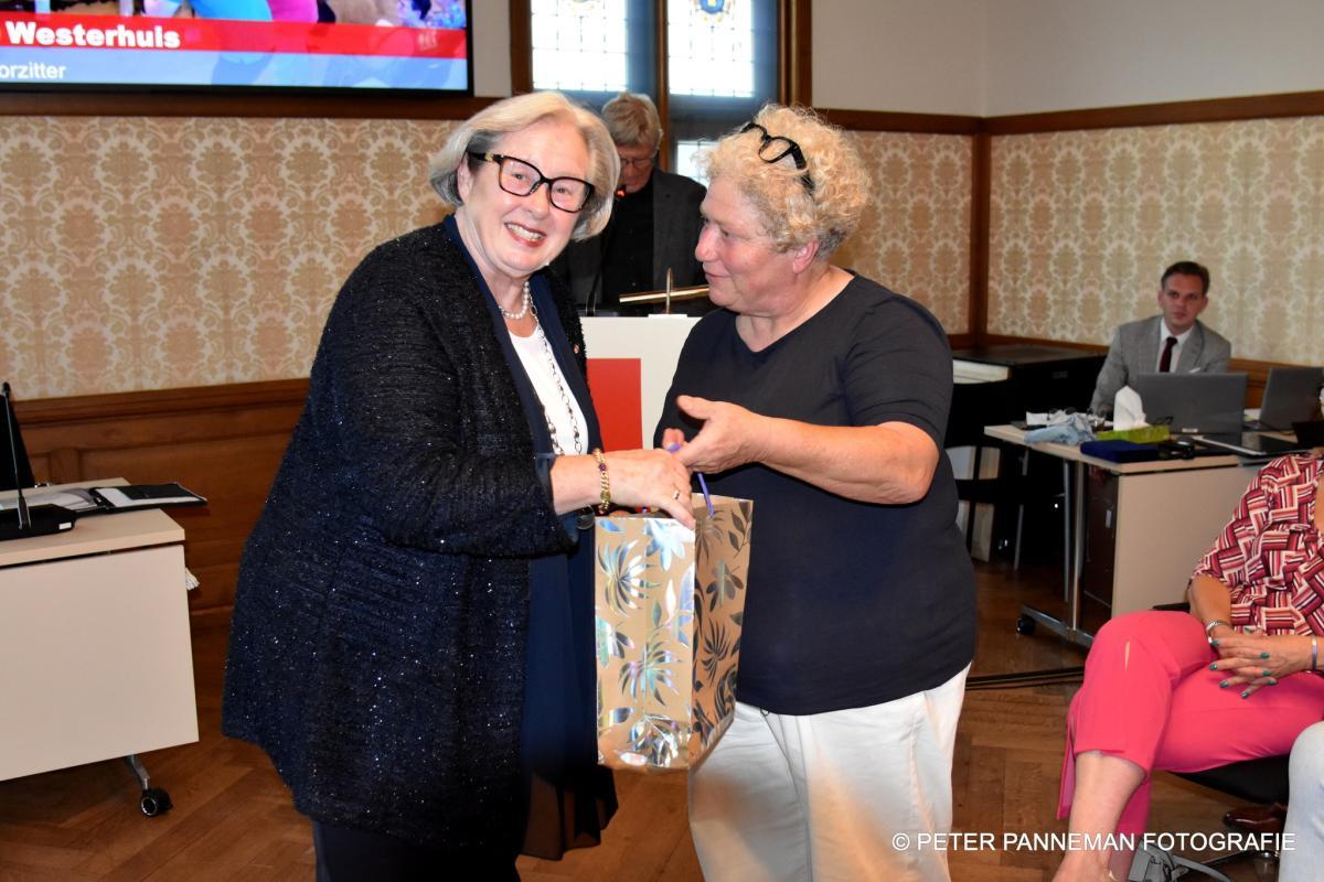 Mevr. Antema had van tevoren al gezegd dat ze er een feestje van wilde maken, en dat werd het zeker, met een lach en traan.