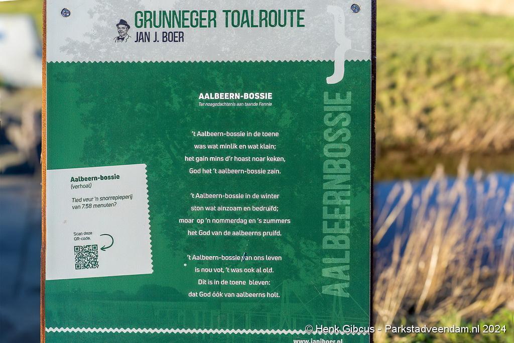 Het is de moeite waard om bij de verschillende panelen te blijven staan en het gedicht te lezen of het lied of verhaal (via QR-code) te beluisteren. Ondertussen kun je de stilte om je heen ervaren en genieten van dit unieke stukje Groningen. Moeten we zuinig op zijn! Deze taalroute is een initiatief van de familie Boer, om zijn werk levend te houden – kijk verder op www.janjboer.nl