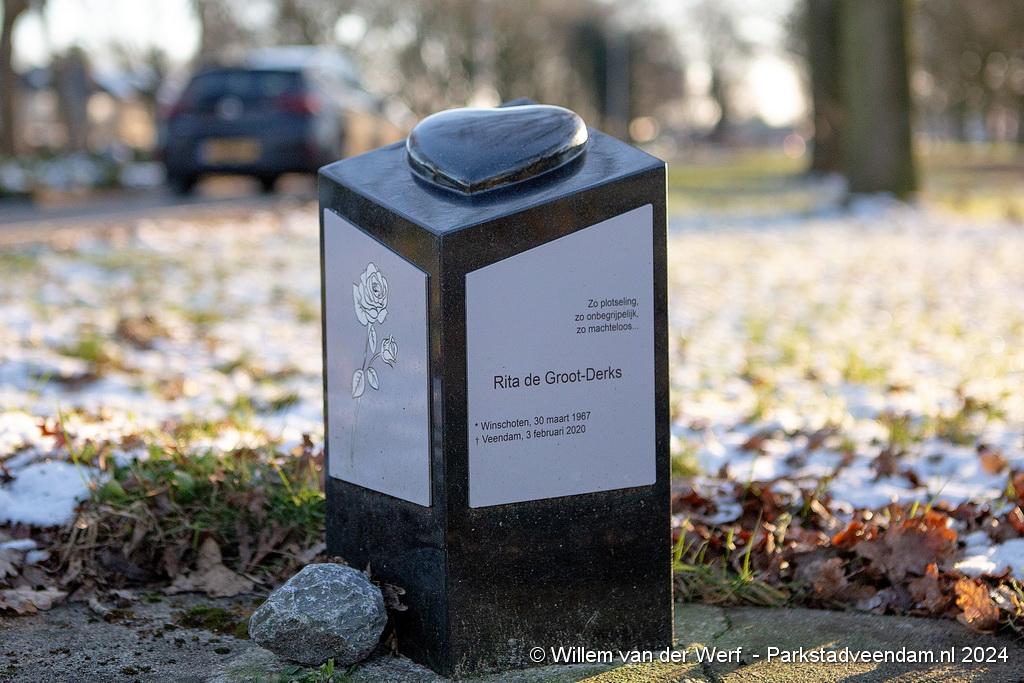 Maandagmiddag is definitief het monumentje aan de Veendammer Sorghvlietlaan verwijderd. Manon de Groot in het bijzijn van familie verwijderde het bermmonumentje voor haar moeder. Het monumentje stond in de groenstrook, direct naast het zebrapad waarop de moeder van de Groot in 2020 werd aangereden.