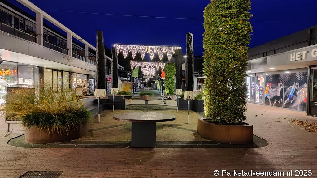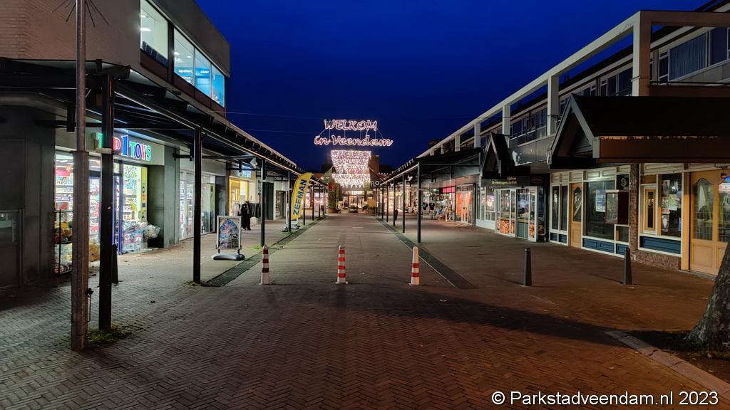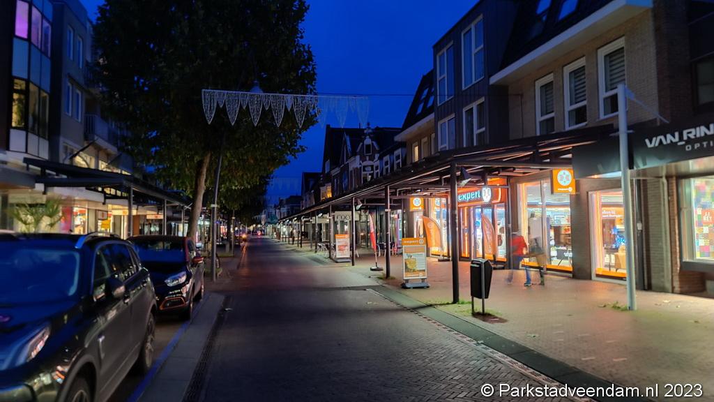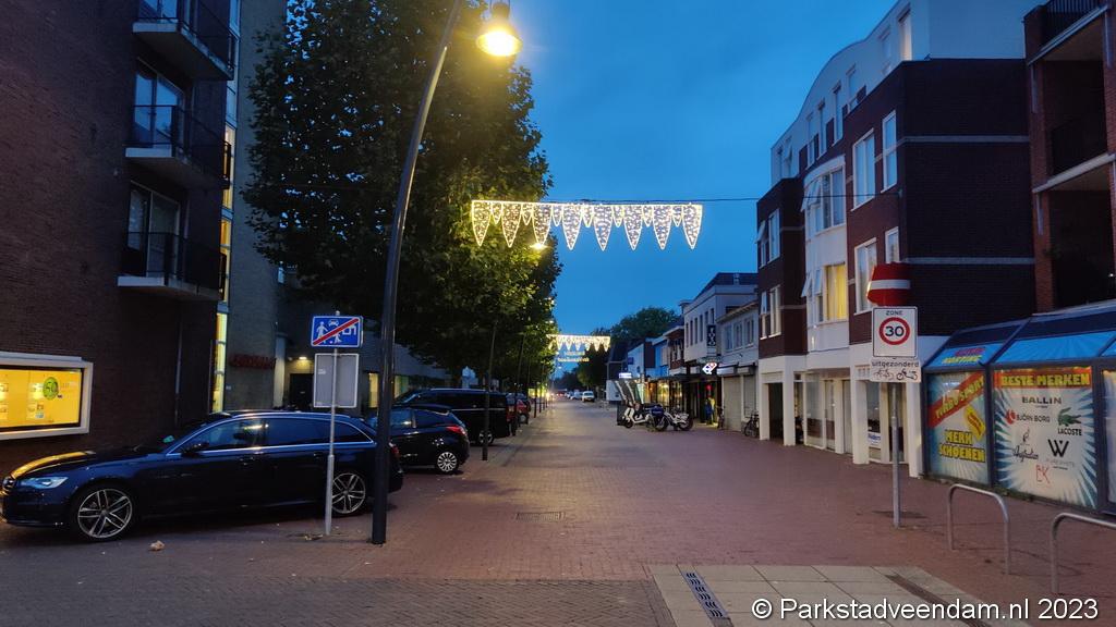 De Veendammer ondernemers maken zich zo langzamerhand gereed voor de komende feestelijke dagen. De onlangs opgehangen feestverlichting straalde aan het eind van de maandagmiddag als ooit te voren.