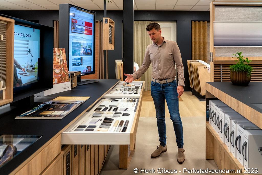 Woninginrichting omvat nogal wat. Raamdecoraties, vloeren, gordijnen, buitenzonwering, wandbekleding en ga zo nog maar even door. In de winkel aan de Lloydsweg 1 kunnen ze alles laten zien. Eind 2022 en begin 2023 heeft daar een uitbreiding/verbouwing plaatsgevonden en is er ca. 150 m² oppervlak bij gekomen. Afgelopen juni was de verbouwingsopening, hetgeen feestelijk gevierd is met medewerking van verschillende andere (toeleverende) bedrijven. 150 m²erbij. Dit is voornamelijk gesitueerd achter het pand.