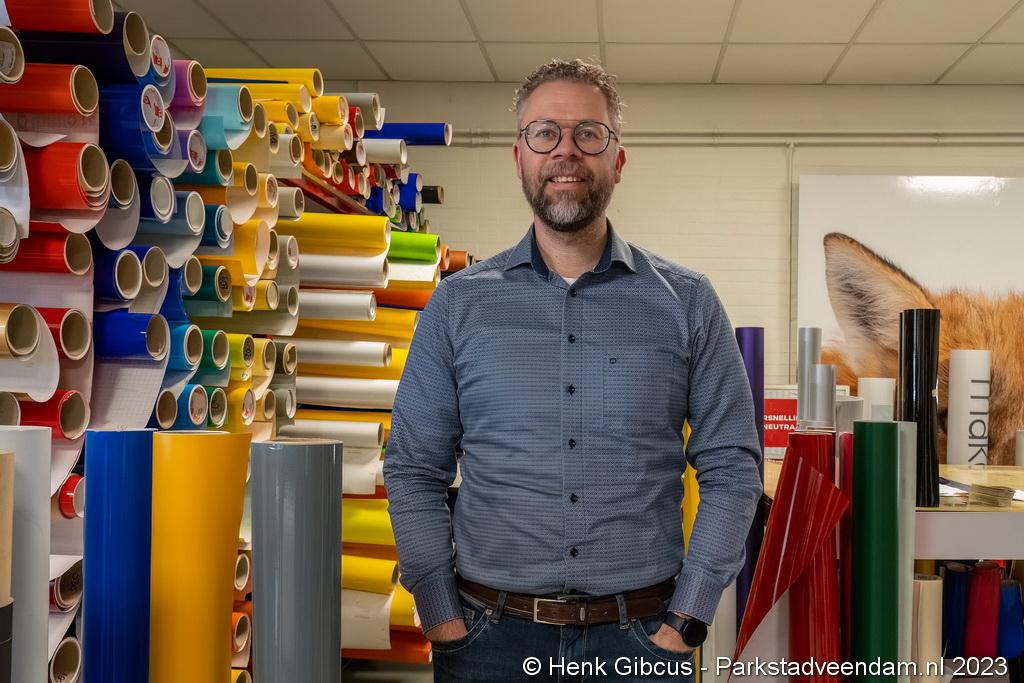 We bieden inderdaad een totaal pakket. Zeker als we bijvoorbeeld een huisstijl moeten restylen, dan gaat het van drukwerk - visitekaartjes en briefpapier tot koffiekopjes, bedrukte bedrijfskleding en bewegwijzering binnen en buiten tot vlaggen, gevelreclame, straatpromotie en autobelettering aan toe. De meeste opdrachten zijn overigens veelal beperkter.”