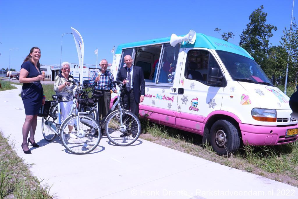 Fietsers tussen Veendam, Zuidwending en Pekela hoeven de weg niet langer te delen met autoverkeer. Met de aanleg van het laatste vrijliggende fietspad langs de Drieborghweg bij Veendam is de route nu afgerond. Het nieuwe fietspad werd donderdag 23 juni geopend door gedeputeerde Fleur Gräper-van Koolwijk en wethouder Bert Wierenga. De bestuurders deelden ijsjes uit langs de route.