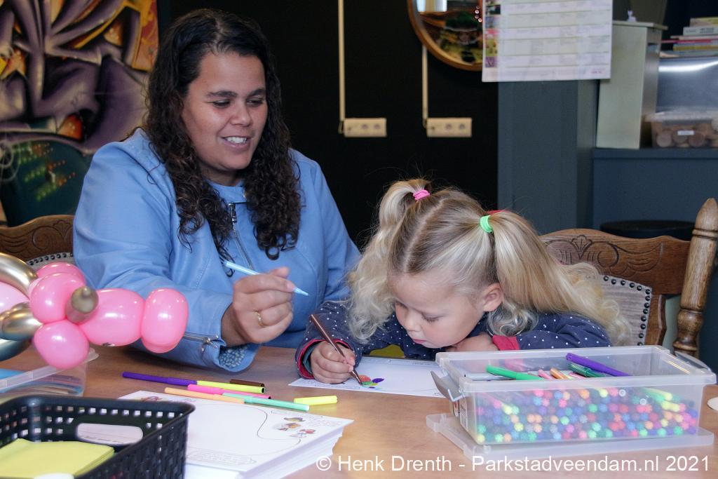 Bij Lea en Xamira kon iedereen creatief aan de slag bij de knutseltafel en was ook Jacqueline van Theater Nowak de hele dag daarbij. Voor de kinderen vouwde zij prachtige creaties van ballonnen, maar ook liet ze haar goochelkunsten zien.