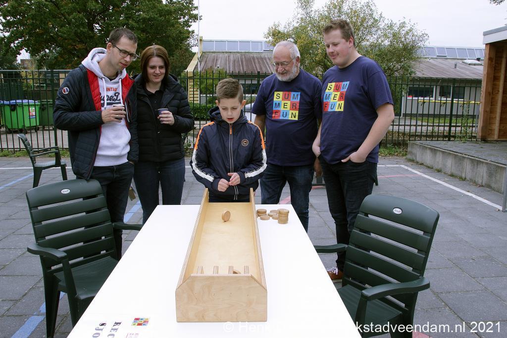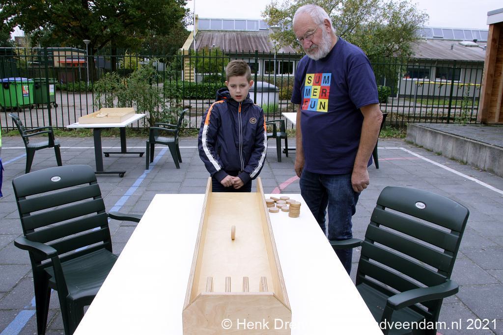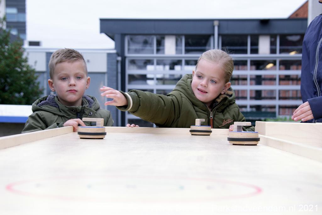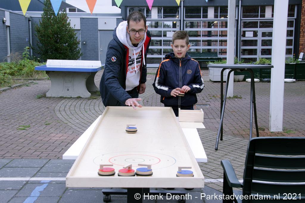 Zaterdag 16 oktober werd er dus een gezellig feestje gehouden voor kind(eren), samen met (groot)ouder(s). Er was vrije inloop bij de Ontmoeting van Compaen. Waar naast andere leuke dingen ook samen met aparte spelletjes werd gespeeld. Zoals een grote Hoedje wip, Sjoelen (maar nu op de kant) en Curling. Bart las voor en werd er samen met de kleine gasten, samen met de grote gasten, muziek gemaakt met ‘boomwhackers’.