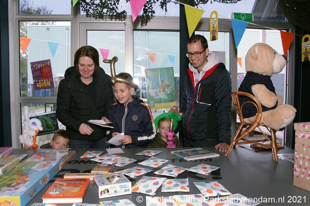 Het Zwerfboekenfeest was gratis toegankelijk. Wel zijn er lootjes verkocht en kon het zomaar dat het huiswaarts gaan met een mooi prijsje was. Het knutselpakket “Worden wat je wil!” lag in ieder geval klaar. Leuk voor in de herfstvakantie.