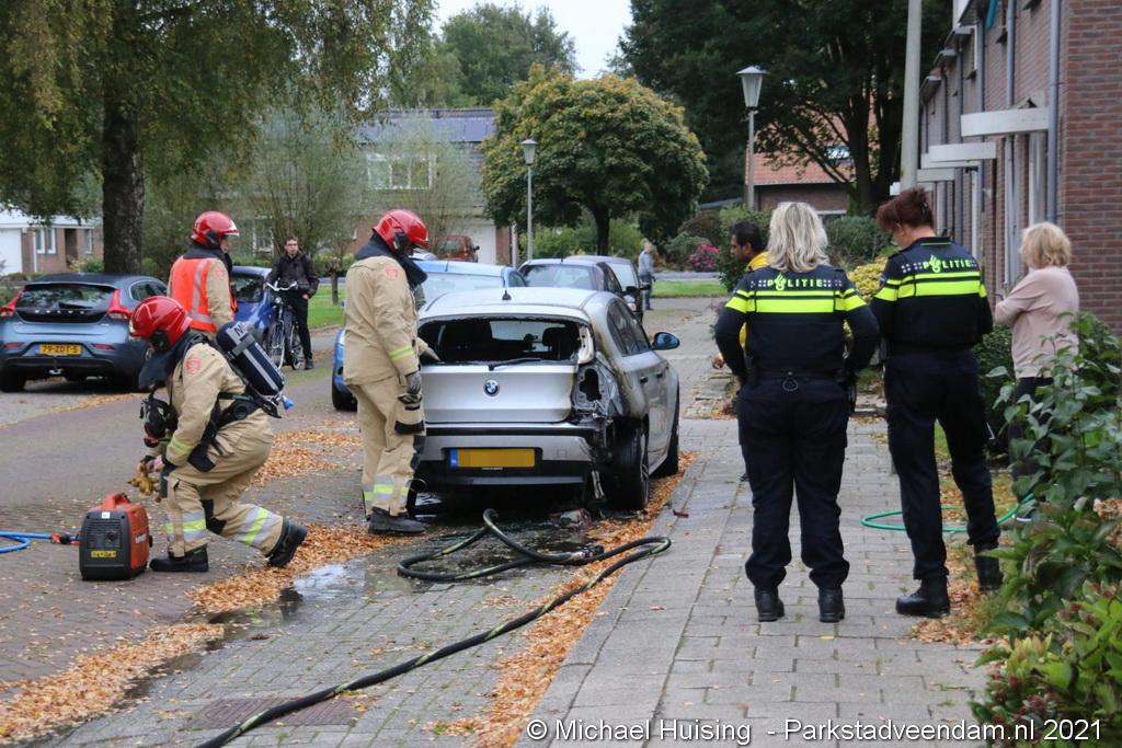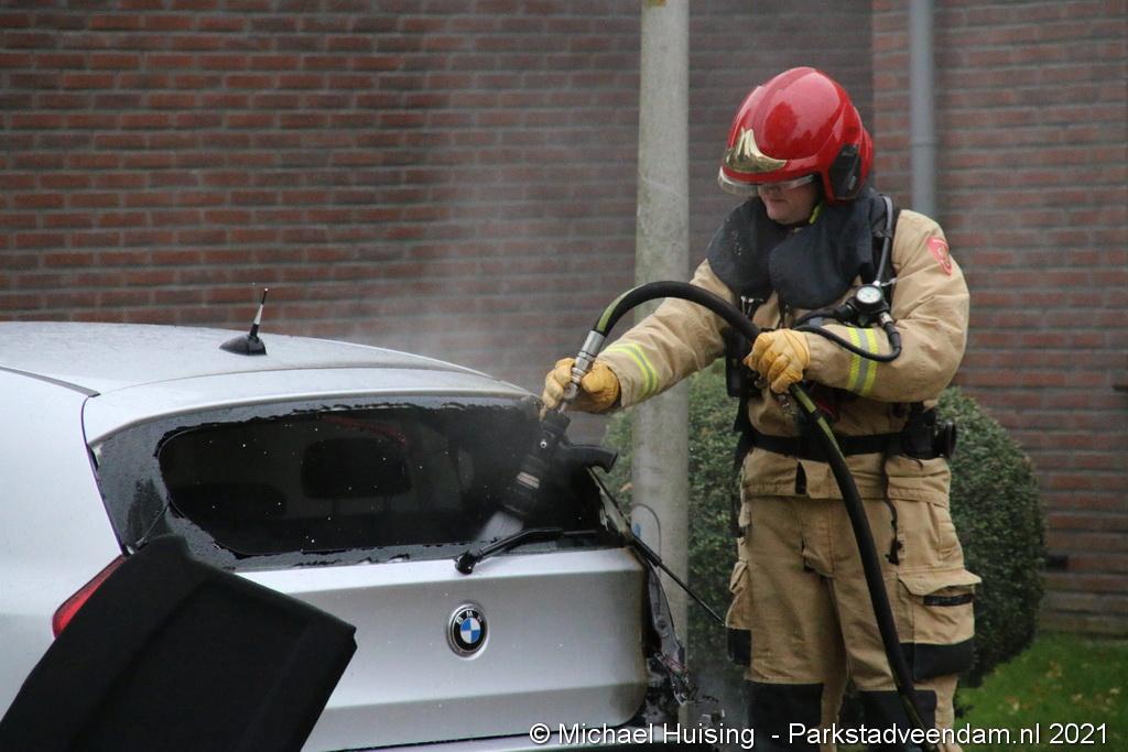 Niet veel later arriveerde de brandweer die de klus afmaakte. Ondanks de snelle blusactie heeft de auto forse schade opgelopen door de brand. Mogelijk is kortsluiting in een accu achterin de kofferbak de oorzaak van de brand. Niemand raakte gewond.
