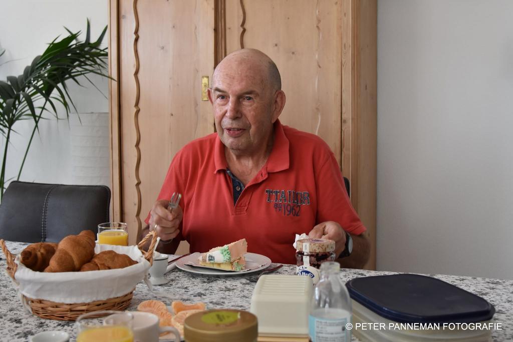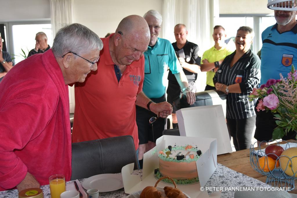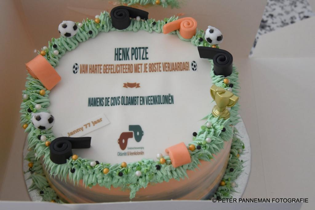 `Henk is een uniek persoon en is niet bij ons clubhuis weg te slaan, ik heb al zo vaak gezegd als ik je kan helpen bel mij maar, maar dat belletje moet nog komen, aldus Olf Pruisman bestuurslid algemene zaken. Om zijn sportiviteit hoog te houden gaat Henk vandaag op zijn 80-jarige leeftijd ook nog even 80 kilometer fietsen. `Je moet in beweging blijven` aldus de jarige Henk Potze, die zichtbaar genoot
