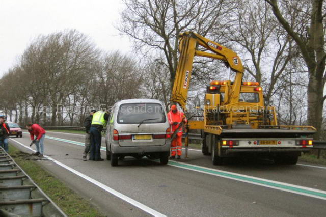 01-03-2008 - Caravan en auto op zijn kop op N33 - © Parkstadveendam.nl