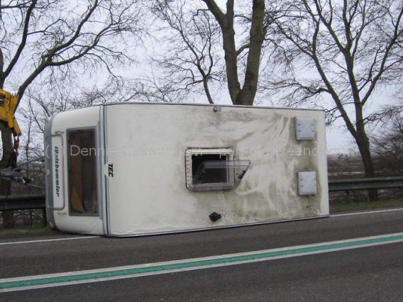 01-03-2008 - Caravan en auto op zijn kop op N33 - © Parkstadveendam.nl