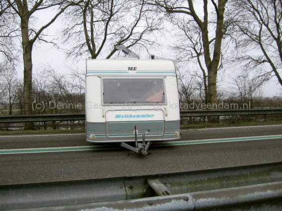 01-03-2008 - Caravan en auto op zijn kop op N33 - © Parkstadveendam.nl
