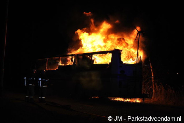 04-02-2014 - Omgebouwde touringcar uitgebrand in Wildervank - © Parkstadveendam.nl