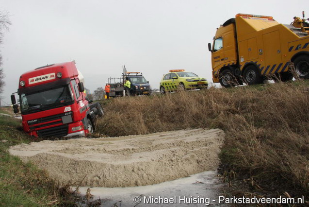 10-02-2014 - Vrachtwagen in sloot N33 Veendam - © Parkstadveendam.nl