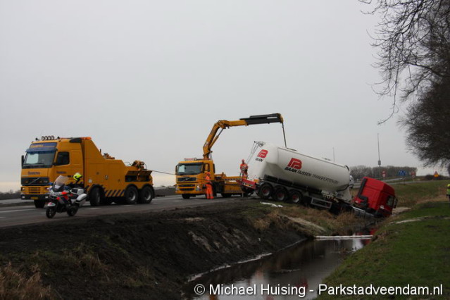 10-02-2014 - Vrachtwagen in sloot N33 Veendam - © Parkstadveendam.nl