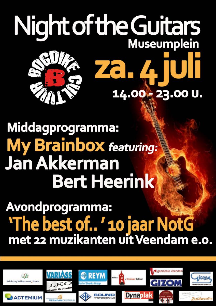 Zondag 20 juli was het even ‘goud van oud’ voor de muzikanten van Night of the Guitars. De stichting Bogdike organiseerde een repetitie en opnamedag voor de Rockdown editie in Hotel Parkzicht. De dertien muzikanten brachten één van hun meest favoriete nummers in, wat een afwisselende en knallende setlist opleverde.