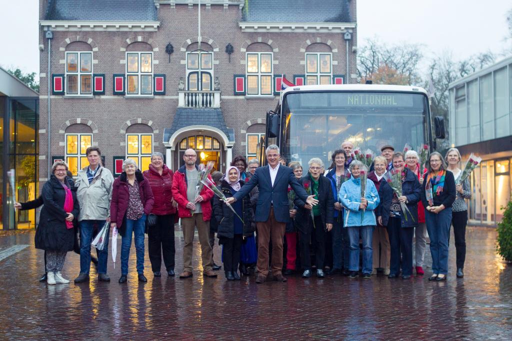 Spontaan een middagje eropuit. Het lijkt zo gewoon, maar voor veel mantelzorgers is het niet zo eenvoudig. Zij zorgen namelijk langdurig en intensief voor een naaste. De gemeente Veendam telt zo’n 5000 mantelzorgers. Op dinsdag 10 november werden, tijdens de landelijke Dag van de Mantelzorg, 28 van hen in Veendam met applaus ontvangen op het Raadhuisplein. Na een uitstapje, aangeboden door welzijnsorganisatie Compaen, stonden wethouder Jaap Velema, gemeenteraadsleden en medewerkers van welzijnsorganisatie Compaen klaar om de mantelzorgers toe te juichen. De 28 mantelzorgers hadden zich bij Compaen aangemeld voor het middagje uit, dat Compaen organiseerde om de mantelzorgers wat ontspanning te bieden.