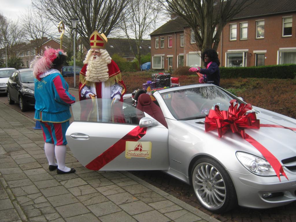 Woensdag 2 december in de ochtend stonden de kinderen van peuterspeelzaal de Duiventil en OJBS de Ommewending vol spanning buiten te wachten, wanneer komt de Sint? Om 8.30 kwamen er ineens een paar Pieten het schoolplein op fietsen of steppen. Wat is dat nou? Dat waren d fietsjes van de peuters en kleuters die al een paar dagen zoek waren! De Pieten hadden ze even geleend….Sinterklaas werd gebeld en kwam in een zeer luxe sportwagen met Pietje Tuttebel aan het stuur. Sinterklaas en 6 van zijn Pieten, waaronder Pakjespiet en Bakpiet, bleven de hele ochtend op school en de Pieten dansten wat af met de kinderen en juffen! Sinterklaas speelde ook Sintliedjes op de piano en iedereen zong mee.
