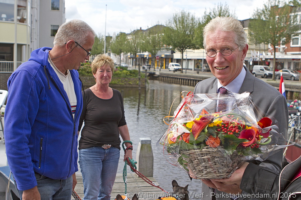 Gabi en Owe Paus met hun 4 Franse bulldogs uit het Duitse Aurich waren woensdag met hun boot Renar de 1000ste boot die in de vaarseizoen 2015 Veendam bezocht. Burgemeester Sipke Swierstra verwelkomde Gabi en Owe Paus aan de aanlegplaats Blankensteinkade / Molenstreek met een Veendampakket met onder andere bloemen, een fles wijn in een speciaal voor de gemeente Veendam ontworpen houder, Veendammer handdoek, Veendammer tas, Gronings zakwoordenboek, een toegangskaart voor het Veenkoloniaal Museum en het boekje ‘Toervaart langs het kleinste dorp van Nederland’.