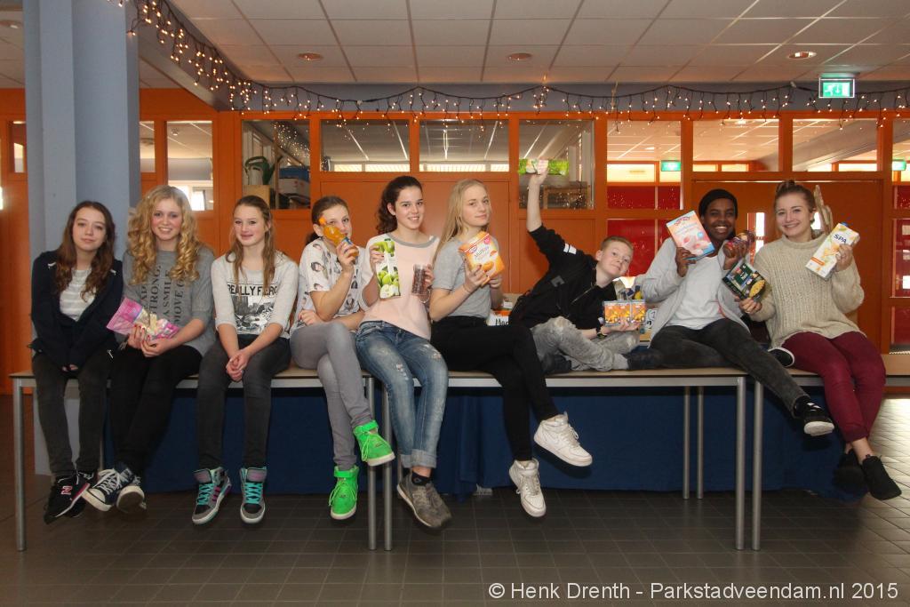 Verkoop lekkernijen door leerlingen Winkler Prins voor kinderopvanghuis in Zuid-Afrika