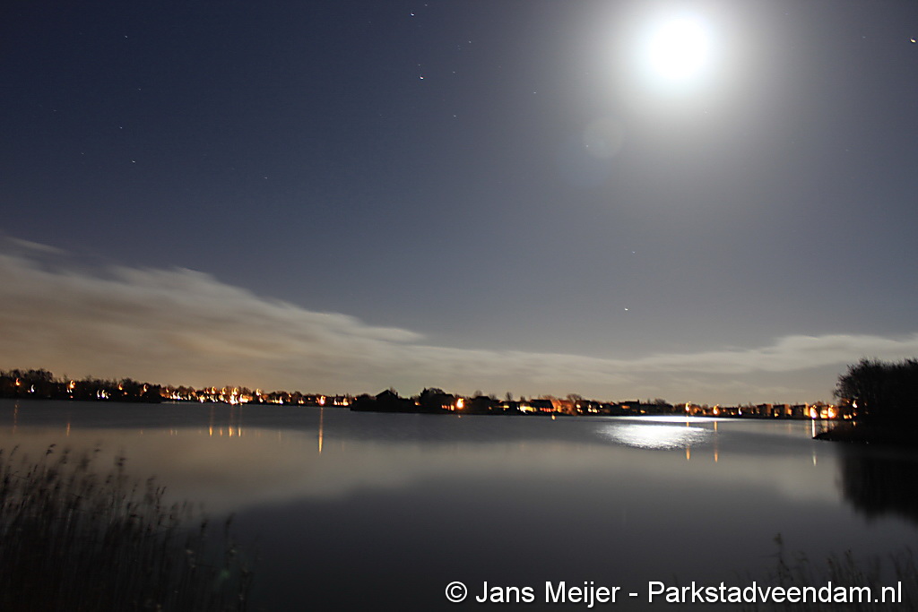 De volle maan maakt er wel weer een mooie natuurverschijnsel van over het Langeboschmeer met de blik richting Wildervank. Een prachtig verlicht landschap en het is net of het overdag is maar het is al een uur of acht in de avond.