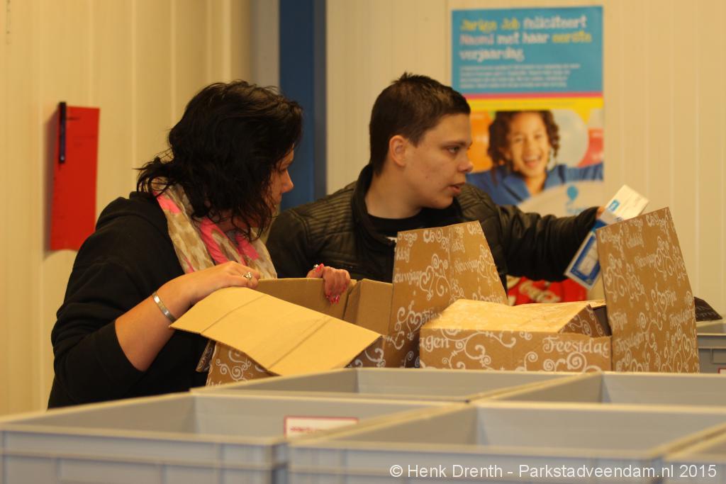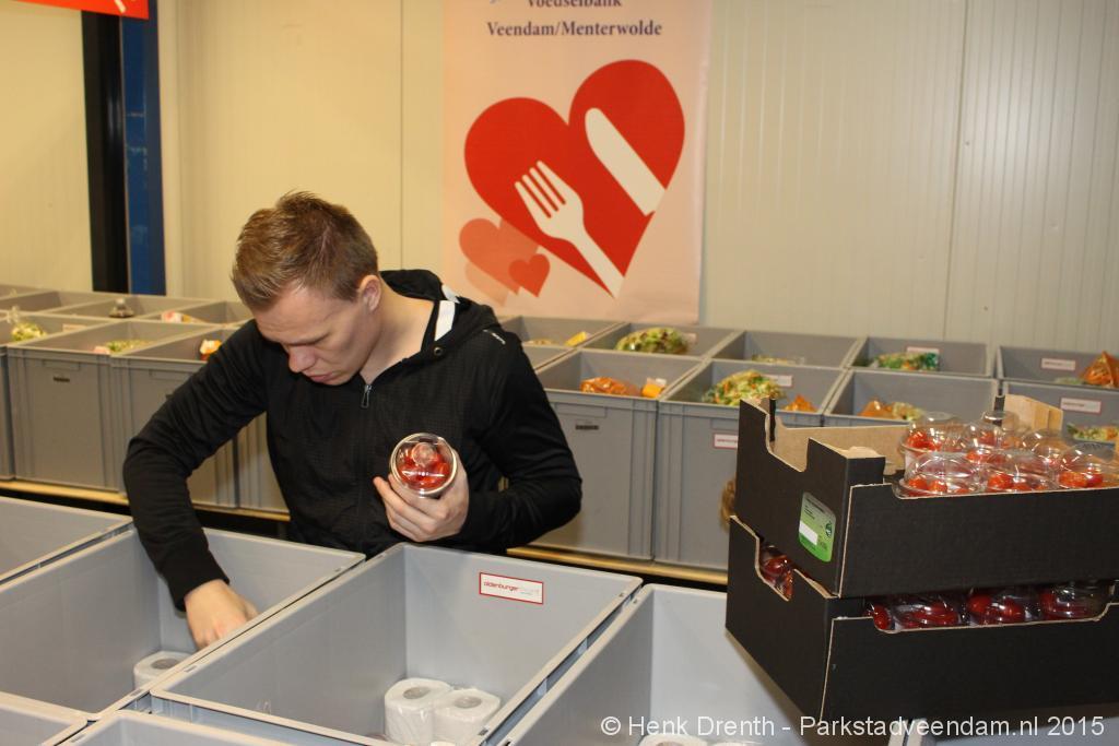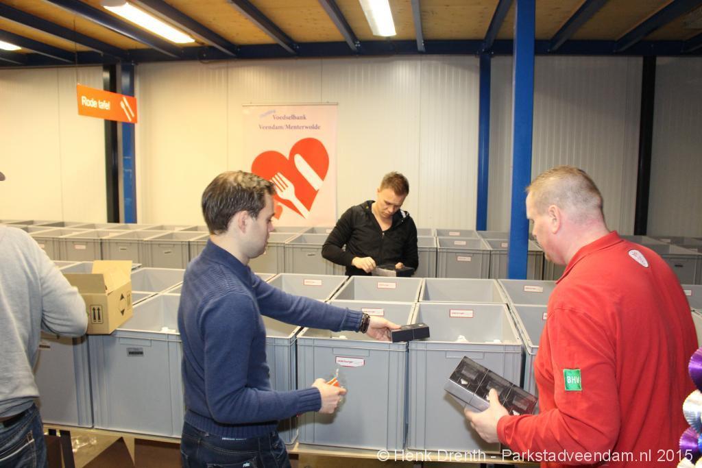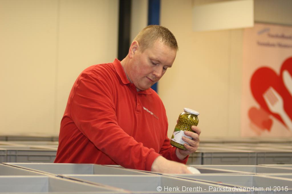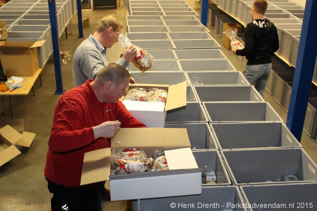Uit de overweldigende actie van RTV Noord werden 23 pallets vol dozen, met een groot gevarieerdheid aan producten, naar de voedselbank in Veendam gebracht. Zeker 280 cliënten worden bediend. Maar uit voorzorg werden er 300 kratten gevuld. Het was voor de tien medewerkers en de zes helpers hard werken. Er werd volgens kleurcodes gewerkt en ieder had daarbij zijn eigen. De pakketten in de 4 verschillende kleurcodes moeten zoveel mogelijk gelijk aan elkaar zijn in een samenstelling van 20 verschillende producten. Met de hoeveelheden wordt ook met extra grote gezinnen rekening gehouden. In een hoek staan de verschillende kratten met glutenvrij, vegetarisch en halal producten.