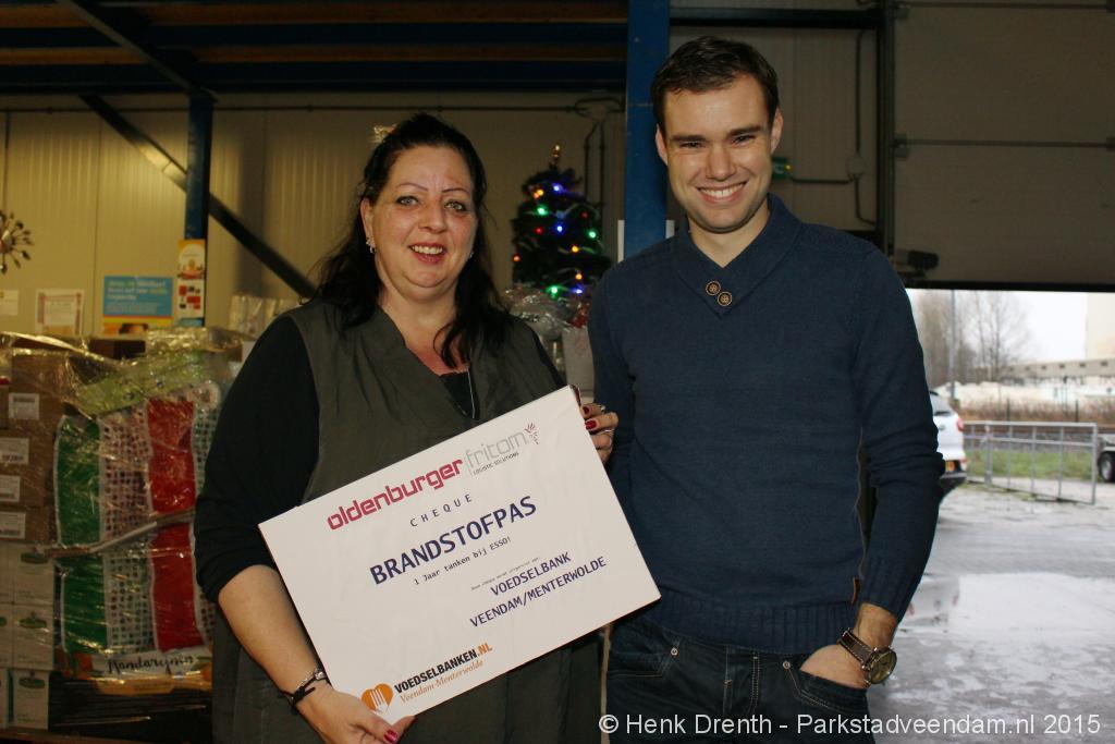 Gelukkig kregen ze helpende handen toegestoken van Frans, Anneke, Rob, Cor en Marinus van Oldenburger|Fritom. Voor het bedrijf is het een traditie geworden om de helpende hand toe te steken. En dat voor het zesde jaar inmiddels. Elk jaar worden er andere collega’s gevraagd, en het is geen moeite om ze ervoor te vinden. Ook een traditie is de jaarlijkse ondersteuning van Oldenburger|Fritom aan benodigde materialen. Vorig jaar werd een koelcel gedoneerd. Dinsdag werd een pompwagen voor het verplaatsen van paletten meegebracht, en een printer met cartridges voor goede prints. Maar dit was nog niet alles. Ook werd een brandstofpas overhandigd voor gratis tanken. Daarmee is 1 jaar lang gratis naar het voedseldepot in Meppel heen en weer te rijden. Voor de medewerkers was het een verrassing.