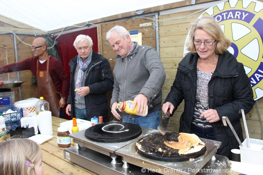 Aan de kraam van de Rotery werd met de verkoop van gebakken champignons en flensjes ook buiten de gemeenschappelijke bar om financiële middelen gehaald voor de beoogde doelen. Uit de bar op de kerstmarkt was zaterdagmiddag al een voorlopige omzet van 2500 euro genereert.