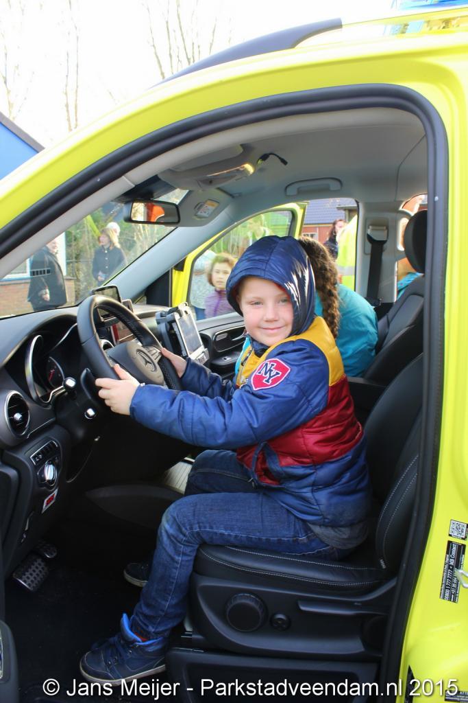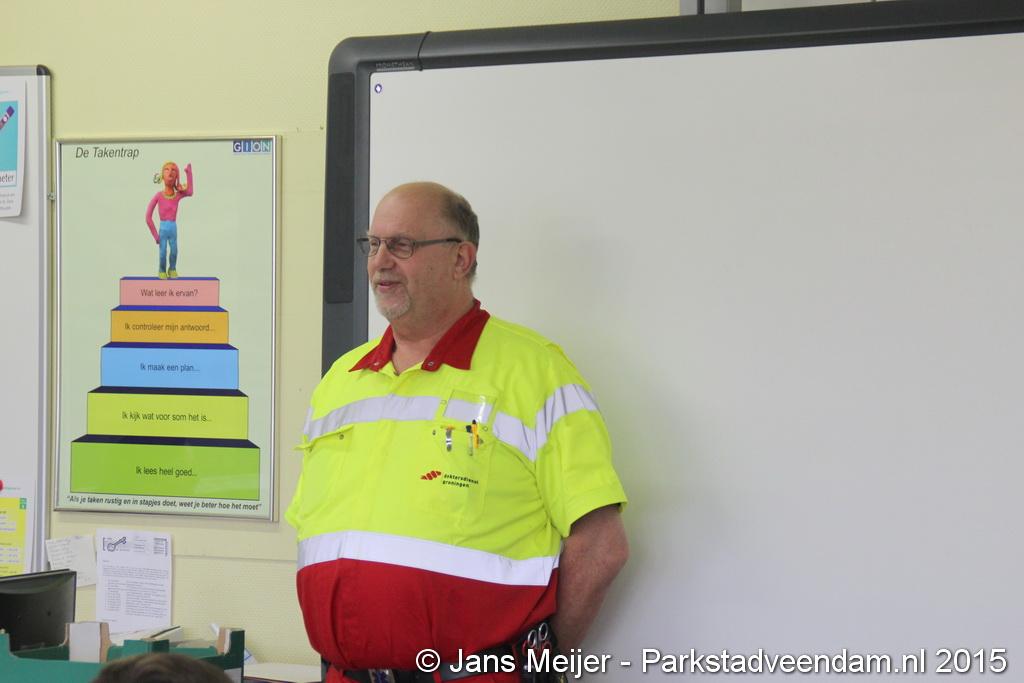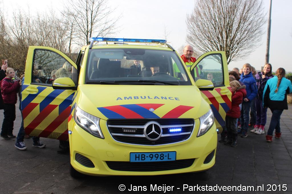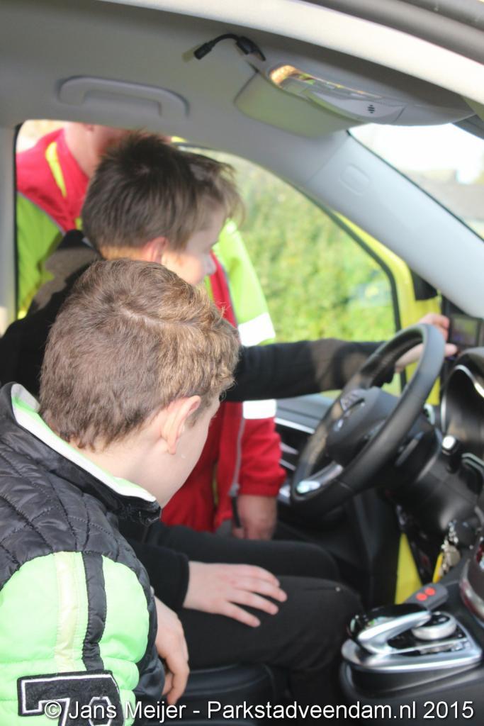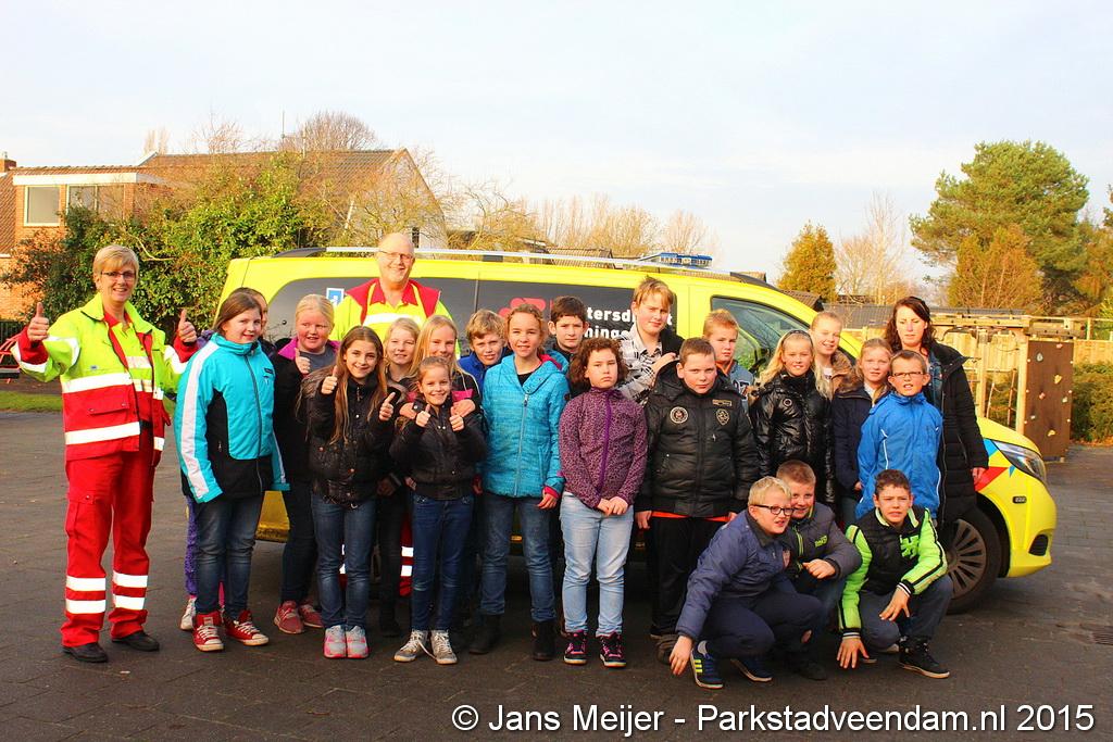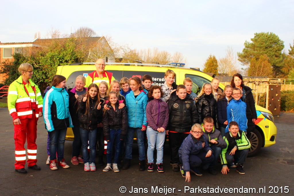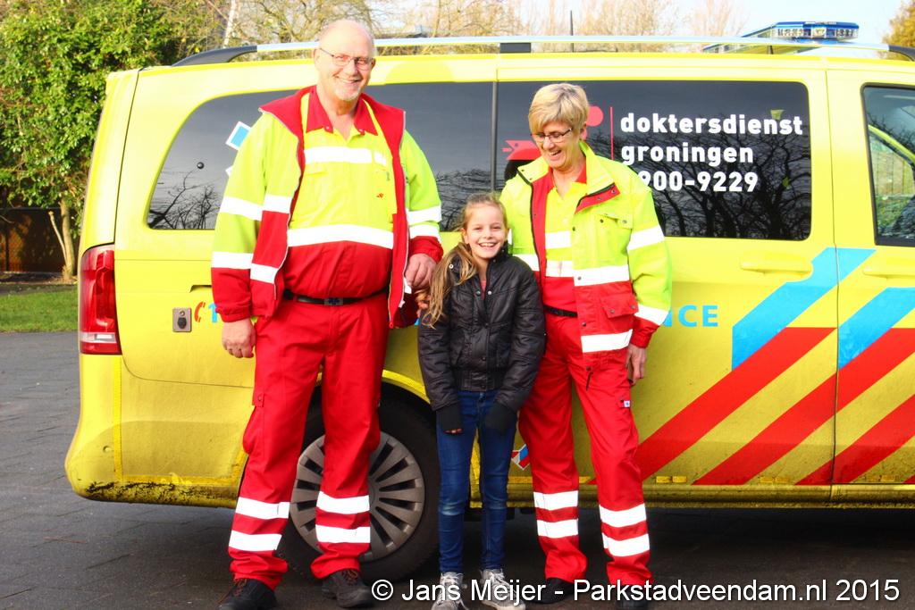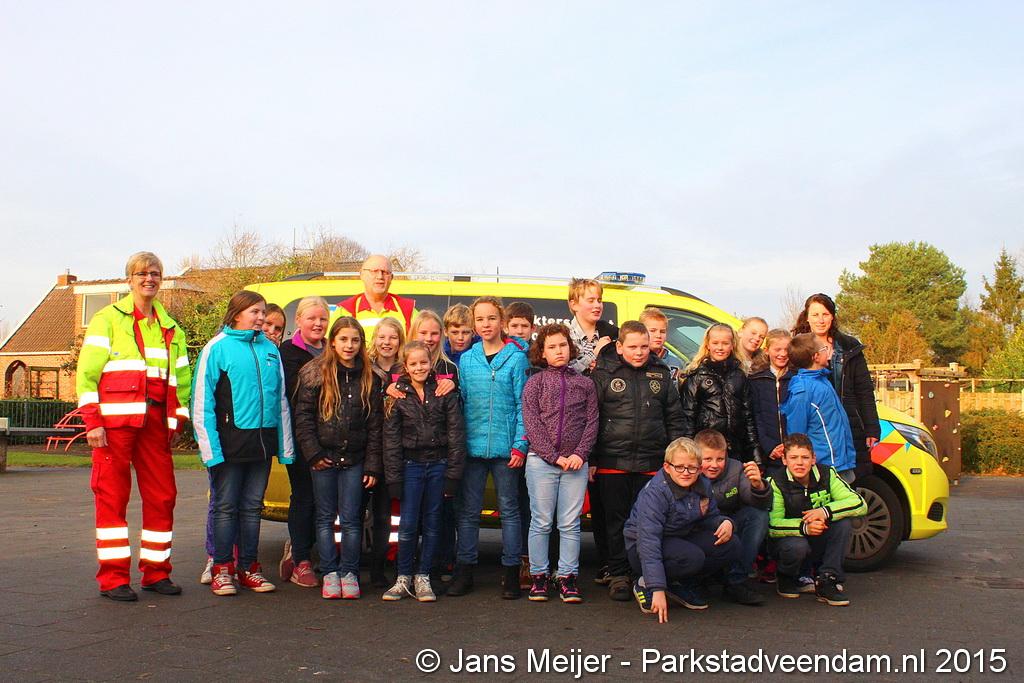 In de klas kregen de kinderen uitleg over de doktersdienst en mochten ze kijken wat de dokter en chauffeurs allemaal bij zich had in zijn dokterstas en mochten ze ook nog even een kijkje in de auto nemen