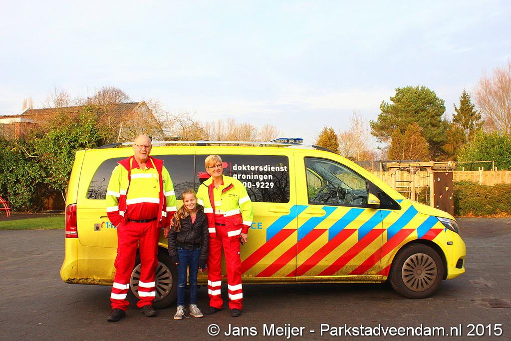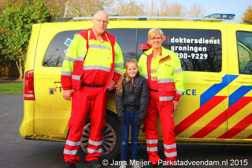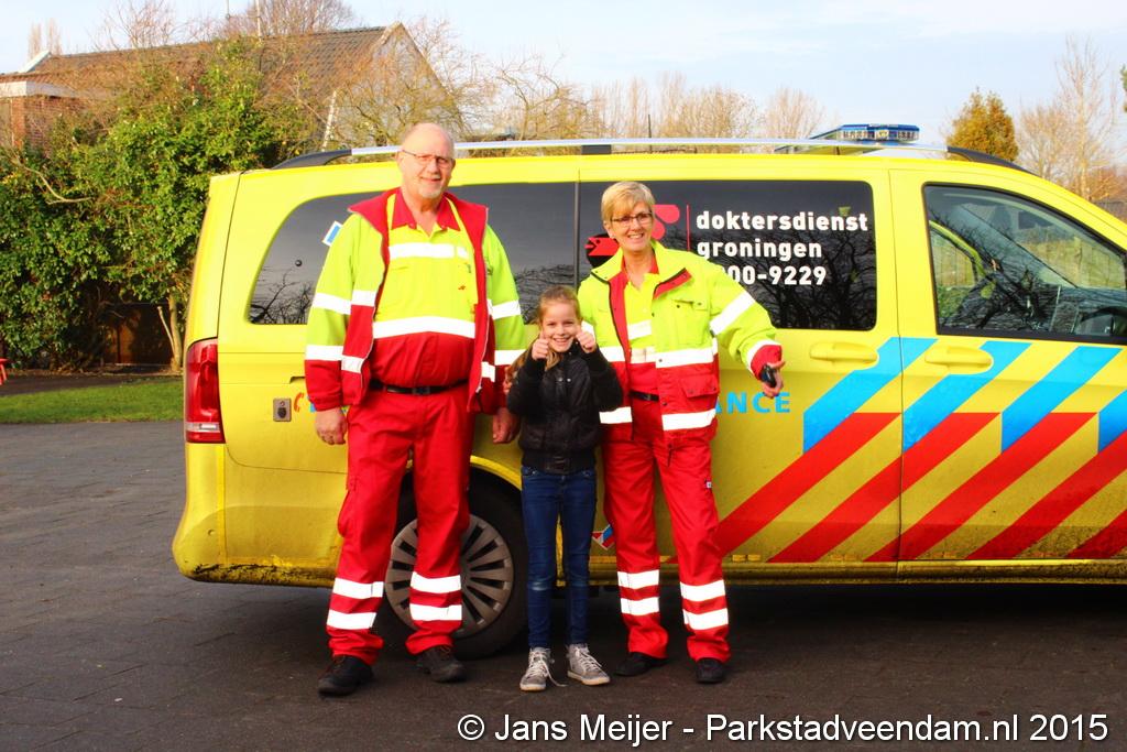 WILDERVANK - Een auto van de doktersdienst kwam donderdag met loeiende sirenes het schoolplein opgereden van De Sleutel. De vele hoofdjes van de kinderen gingen omhoog in de klas en keken verbaasd naar buiten. Het was een verrassing van de opa en oma van Ramona Tepper omdat kleindochter Rowena haar EHBO diploma had gehaald.