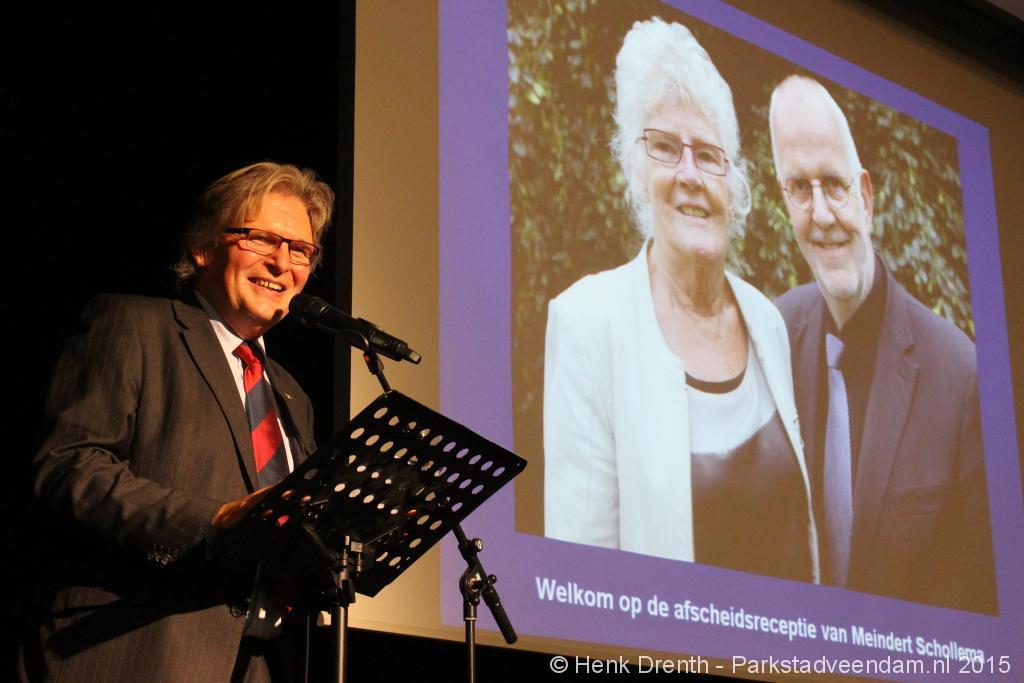 AMBASSADEUR - Onder grote belangstelling heeft Meindert Schollema vrijdagmiddag afscheid genomen als burgemeester, samen met zijn vrouw Trieneke die bij openbare gelegenheden meestal aan zijn zijde heeft gestaan. De publieke belangstelling was overweldigend, zo’n 1000 mensen hebben de afscheidsreceptie in De Binding bezocht.