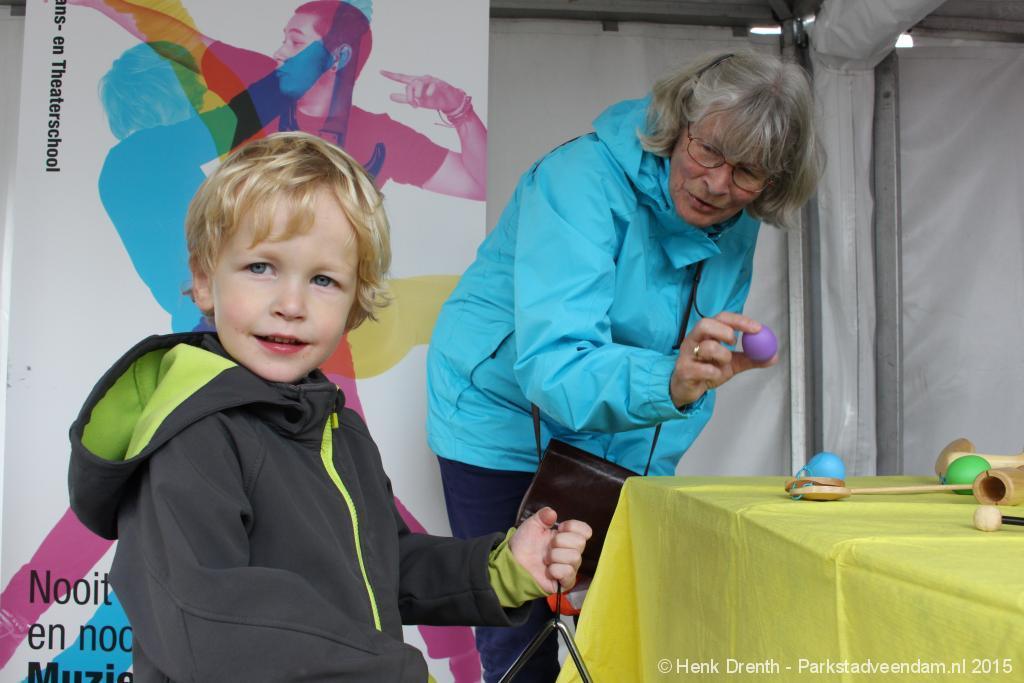 In de tent lagen op een tafel allerlei ritme-instrumenten uitgestald. De triangel, castagnetten en kleine slaginstrumentjes werd door kinderen, maar ook volwassenen, uitgeprobeerd. Het gaf veel plezier, maar ook een kakofonie van geluid door elkaar. Maar voor deze keer mocht dat.