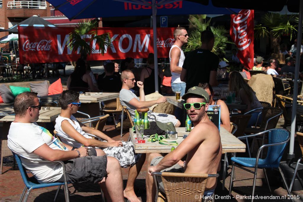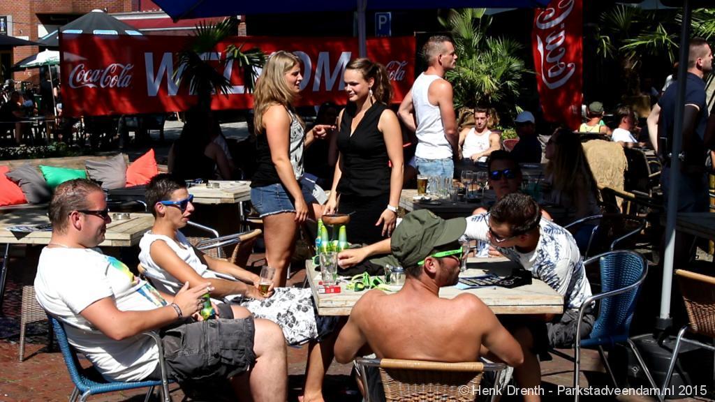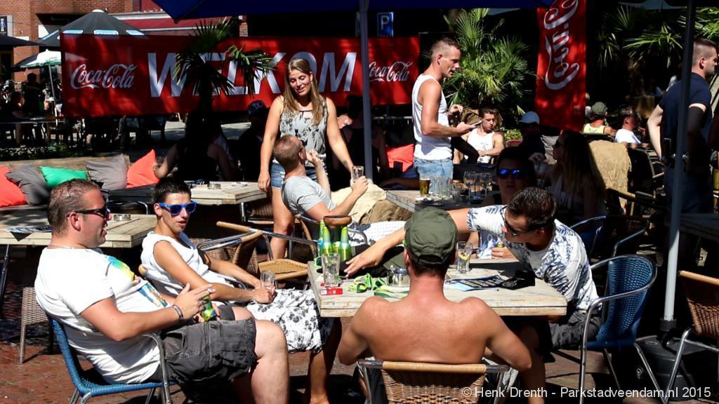 Veendam staat bekend om zijn ongeveer 20 gezellige terrassen in het centrum, en zulk fraai weer staat voor veel terrasbezoek altijd garant. Daarbij is het ook steevast mensen kiek’n die langs kwamen schuifelen. Uitgaanscentrum Jinx had wederom de succesvolle Tropical Mondays georganiseerd.