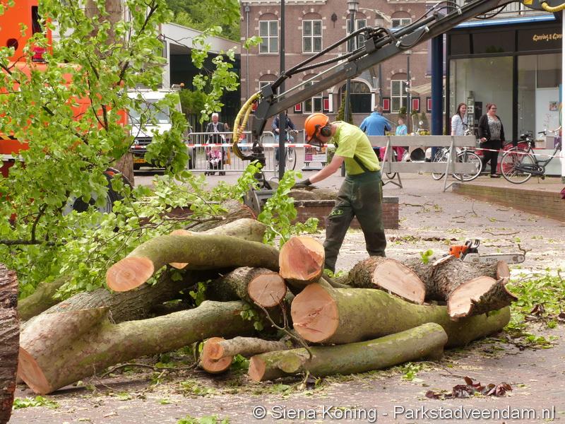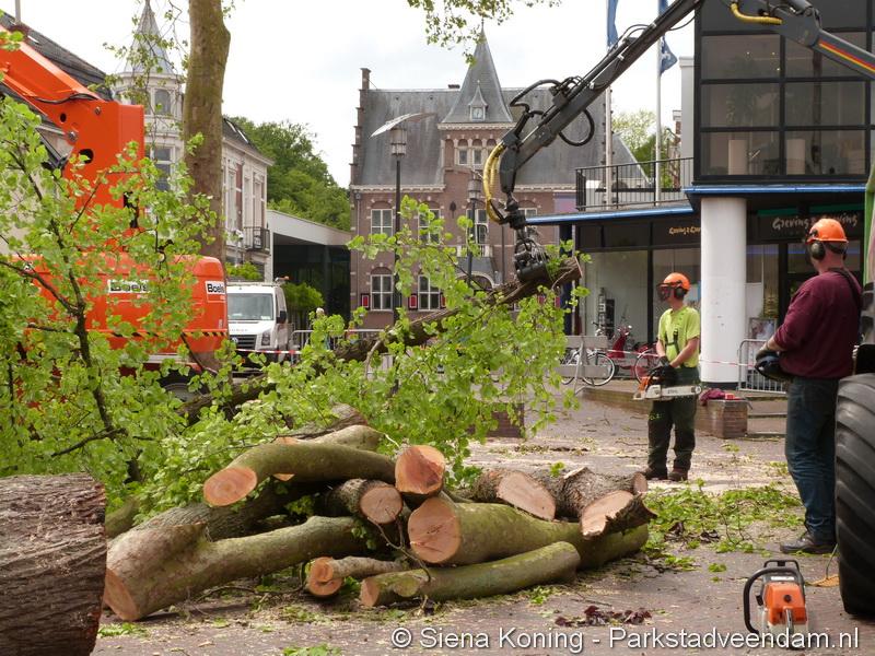 VEENLUSTPLEIN – Afgelopen week kwam de gemeente met de mededeling dat er drie monumentale bomen moeten worden gekapt en drie monumentale bomen drastisch gesnoeid moesten worden op de Veenlustplein. Vrijdag werd in alle vroegte de werkzaamheden uitgevoerd. Jan Schiphuis en Siena Koning namen een kijkje en legde deze trieste gebeurtenis vast. Deze bomen waren ooit onderdeel van de vroegere Veenlusttuin maar in slechte staat. Omdat ze een gevaar opleveren voor de omgeving werden ze met spoed gekapt. Er komen nieuwe bomen voor terug!