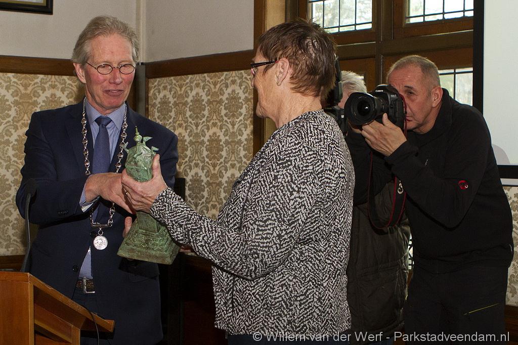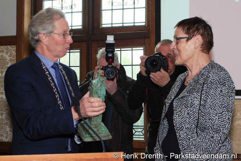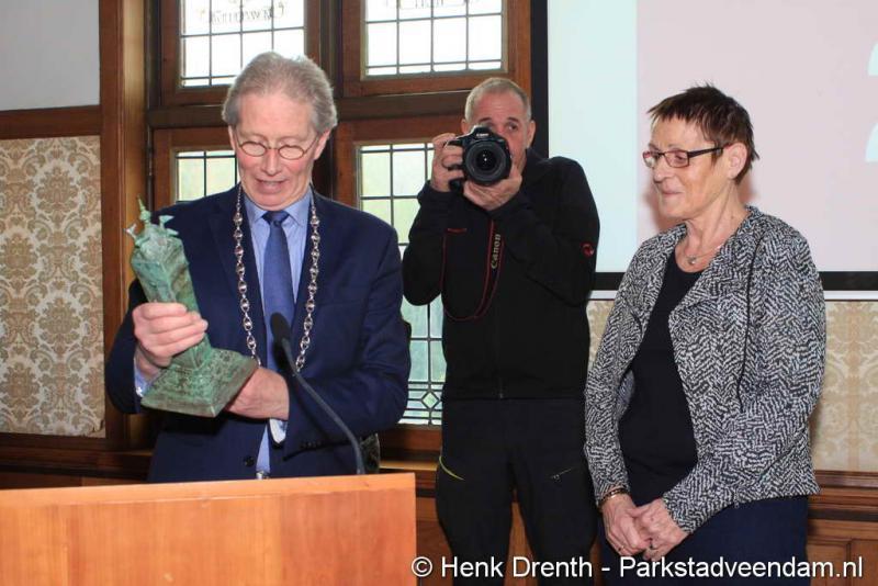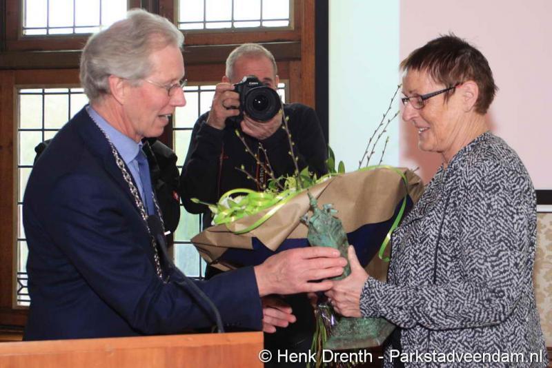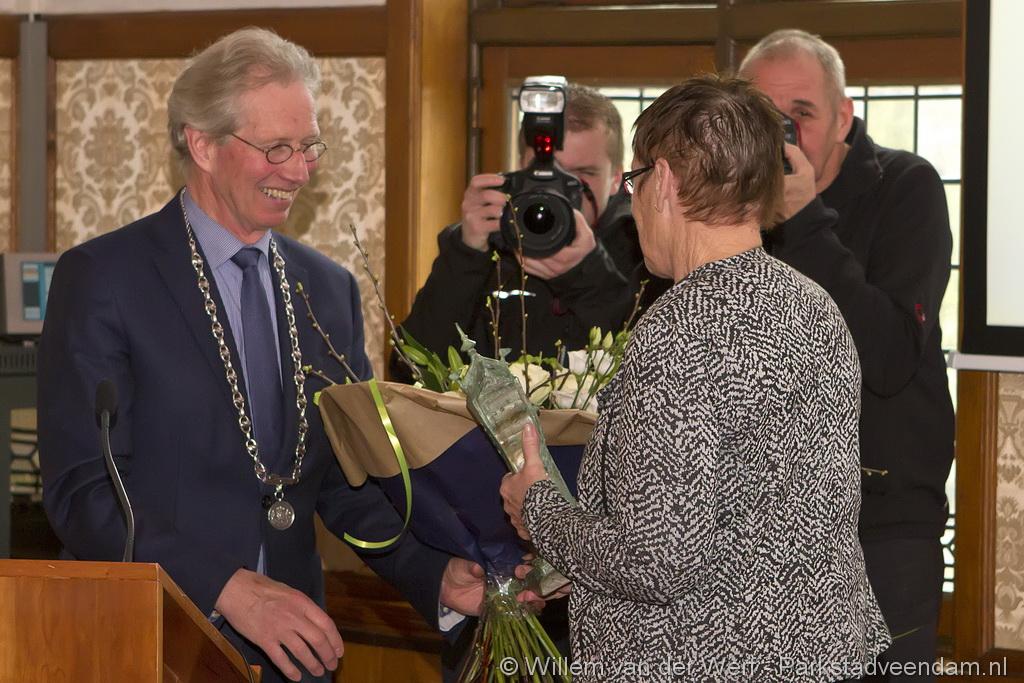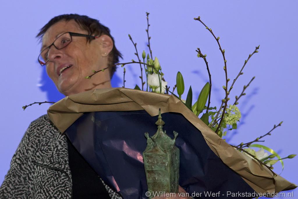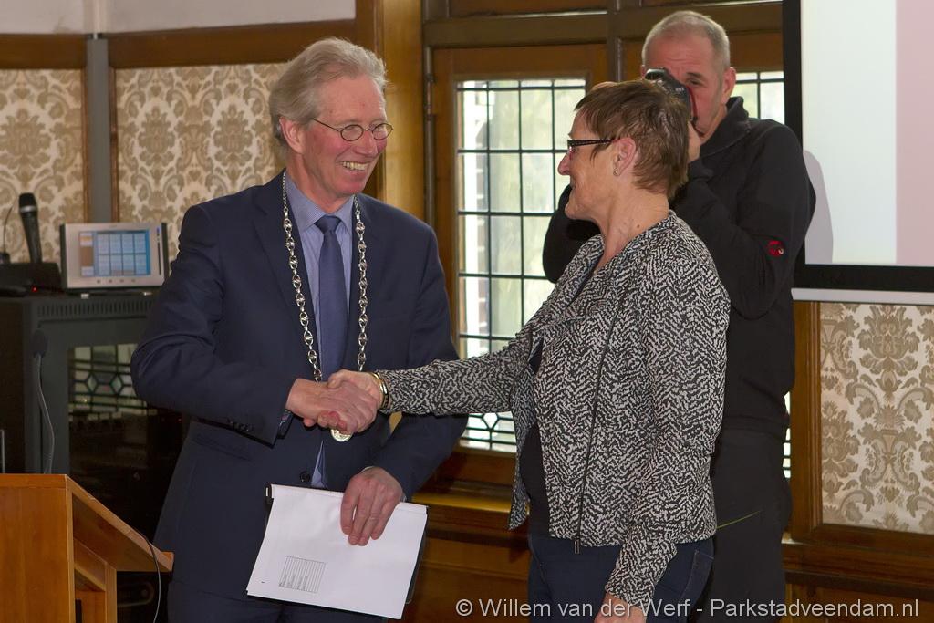 De nieuwe Veendammer van het Jaar moest het nog wel even op haar in laten werken. Ze was er beduusd van en nietsvermoedend. Maar had thuis wel al gemerkt dat er iets gaande was. Haar man was iets anders dan anders. Met een smoes was ze naar het gemeentehuis gelokt. Eenmaal in de raadszaal zag ze bekende mensen zitten, en viel het kwartje.