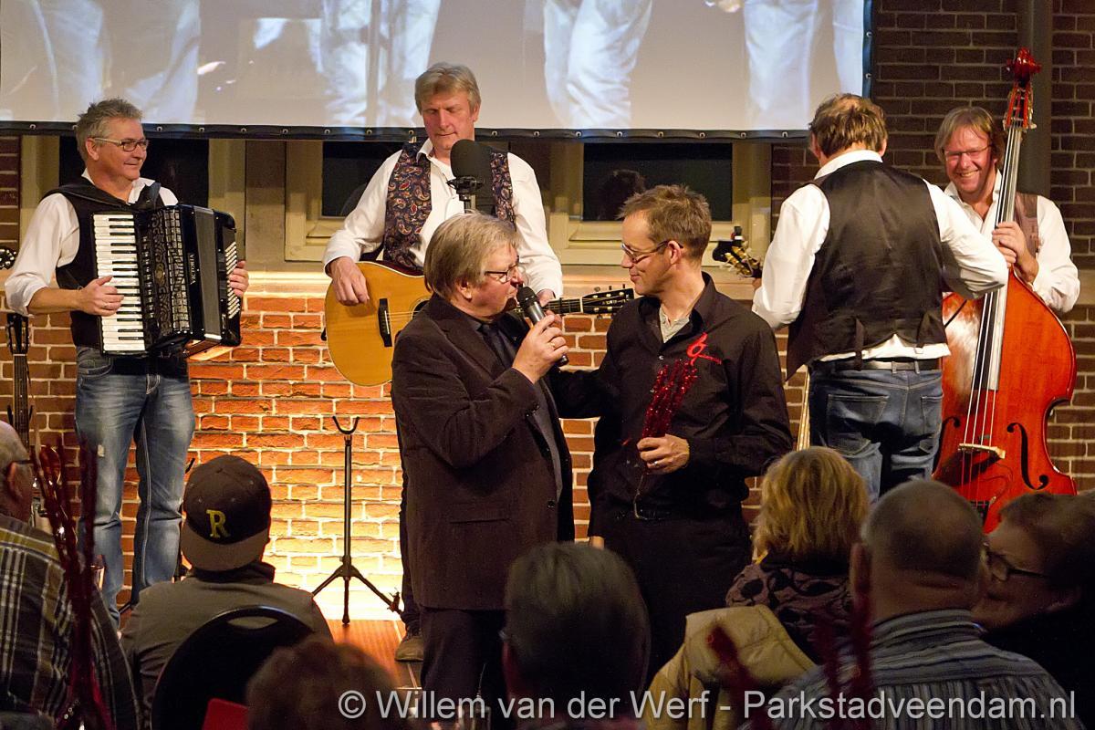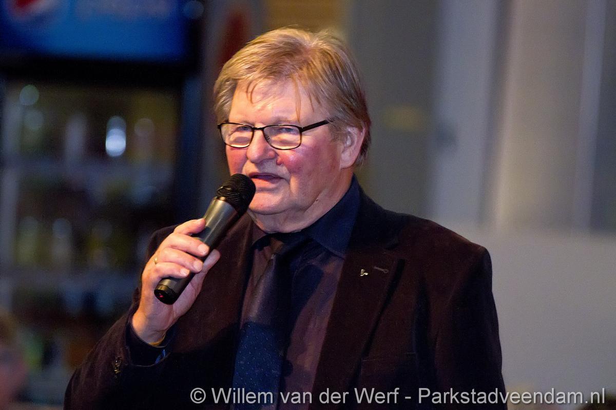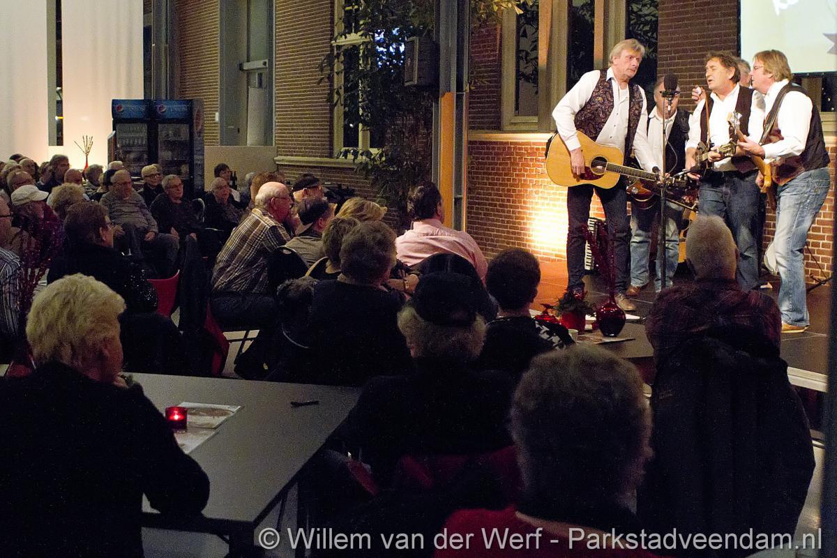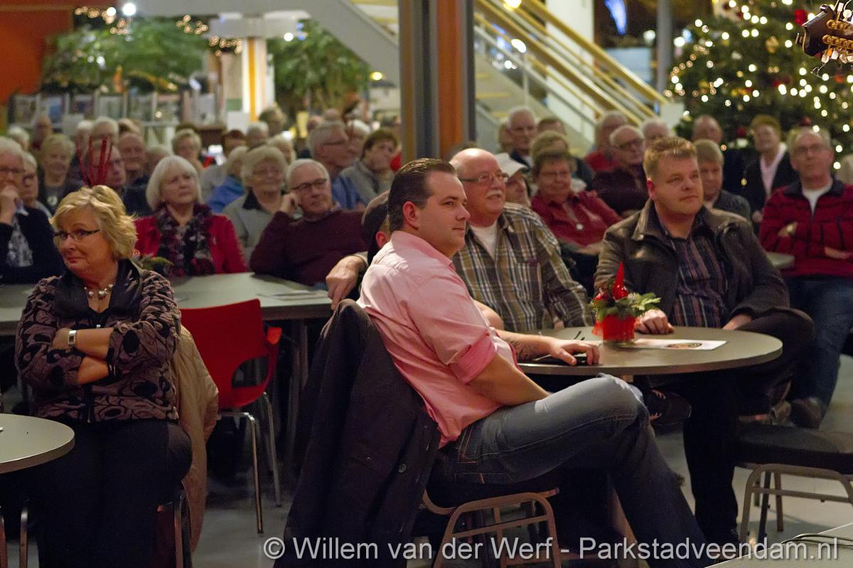 Bert Kraan (76) van Stichting Kleinkunst  organiseert al 10 jaar Koopavondoptreden in Veendam.  De Koopavondoptreden zijn gratis toegankelijk. Deze avond werden er lootjes verkocht om de kas van de Stichting Kleinkunst te vullen waaruit Bert Kraan de koopavondoptreden bekostigd. De gelukkige winnaars konden een kerststuk meenemen naar huis.