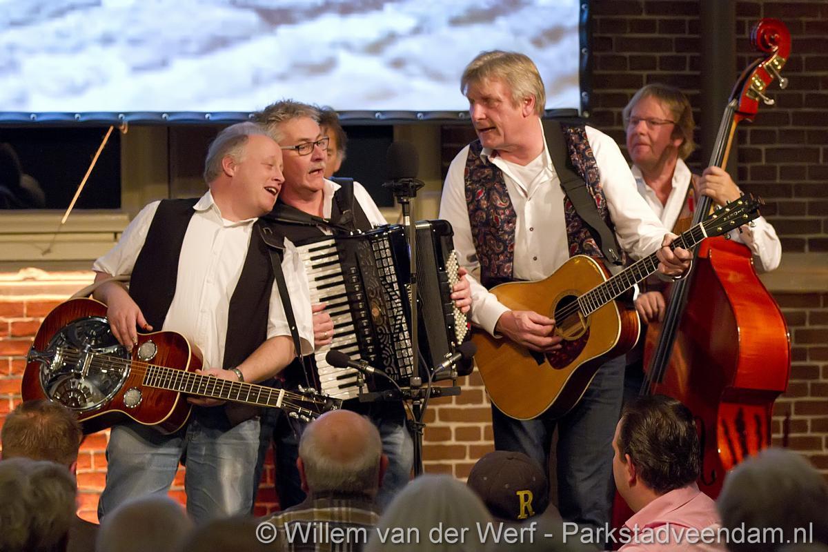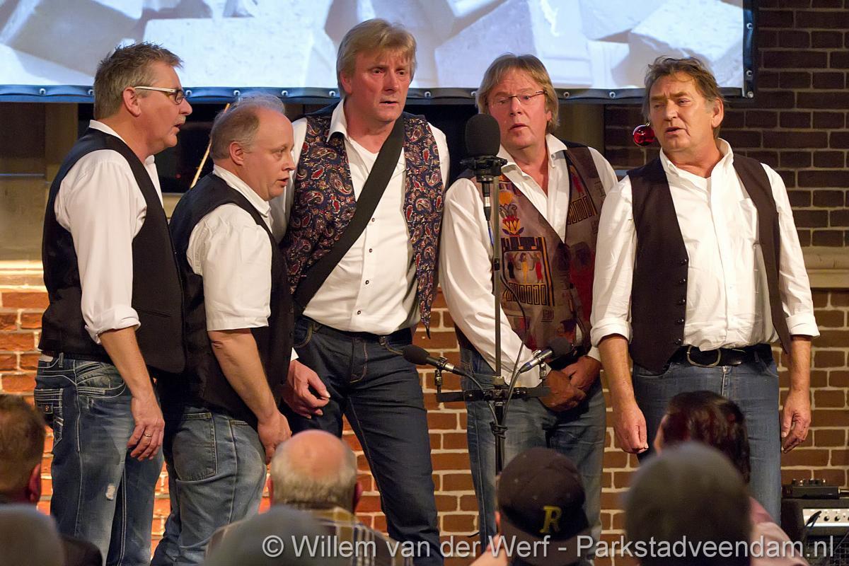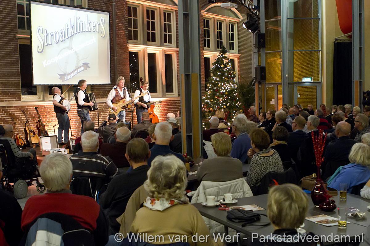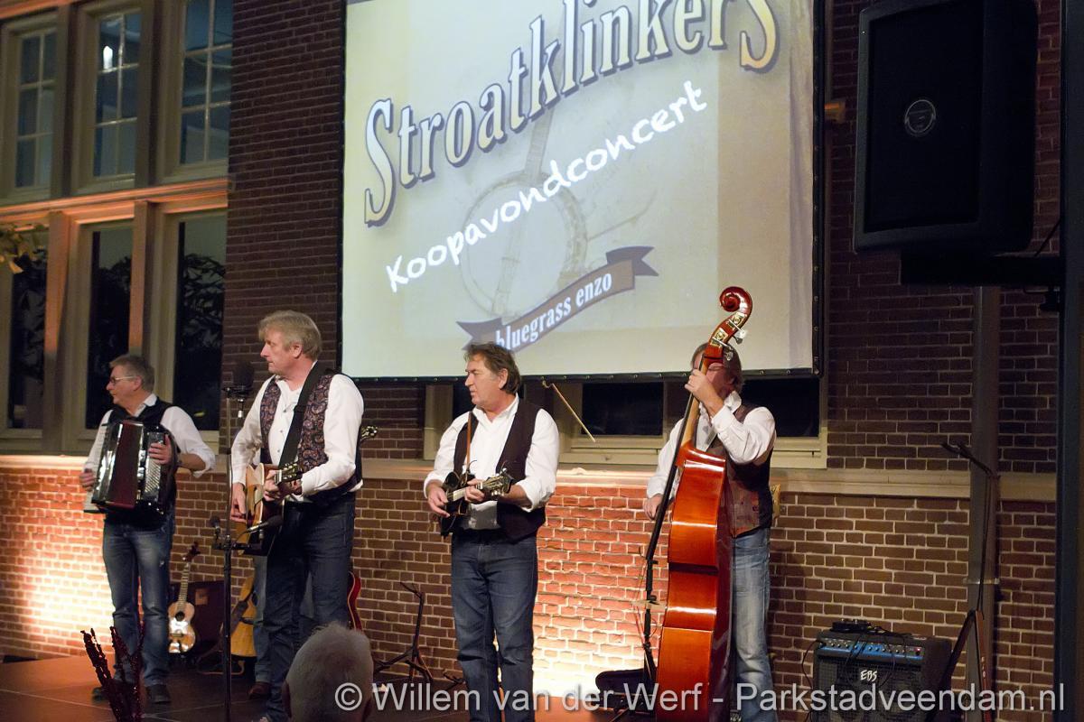 KOOPAVONDOPTREDEN - Donderdagavond werd in de foyer van vanBeresteyn het seizoen Koopavondoptredens 2014 afgesloten met een optreden van de De Stroatklinkers. De groep bestaad uit Bob Heidema, Harry Jansen, Henk Bloupot, Adrian Farmer en Bert Veldkamp. De foyer was tot de laatste stoel bezet zodat ook mensen plaatst moesten nemen op de trap.